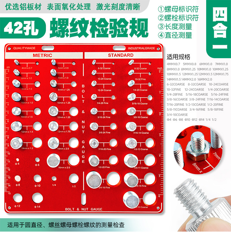 Model 42-hole metric/imperial screw nut bolt thread checker measuring gauge