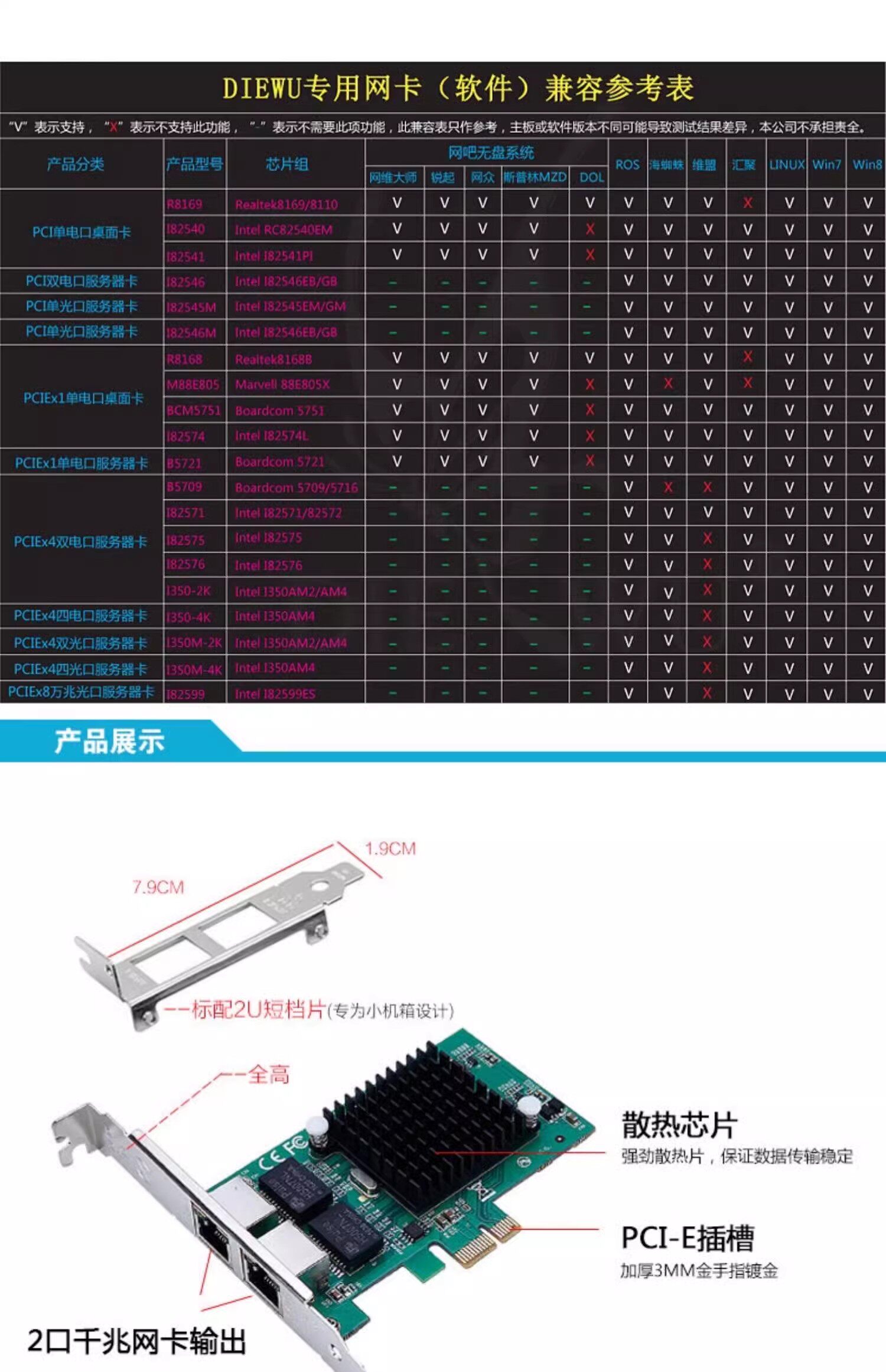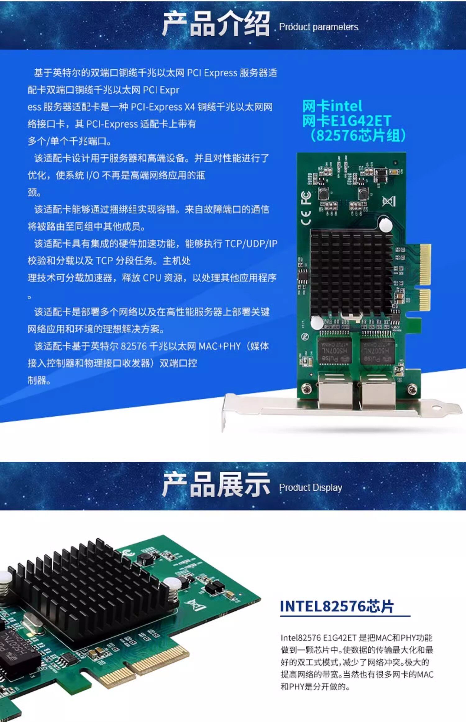 [Dual-Port Intel]Txa030 82576Pcle4X Network Card Small Board[Suitable for Large Servers]