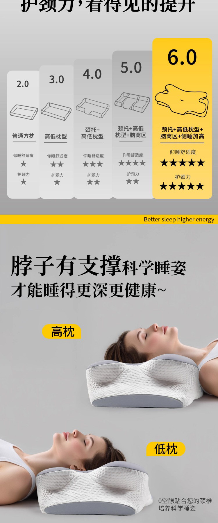 Pillow to protect cervical vertebra and help sleep, special for adults to sleep, cervical spondylosis, traction, anti-arch, pillow core, memory foam, non-collapse