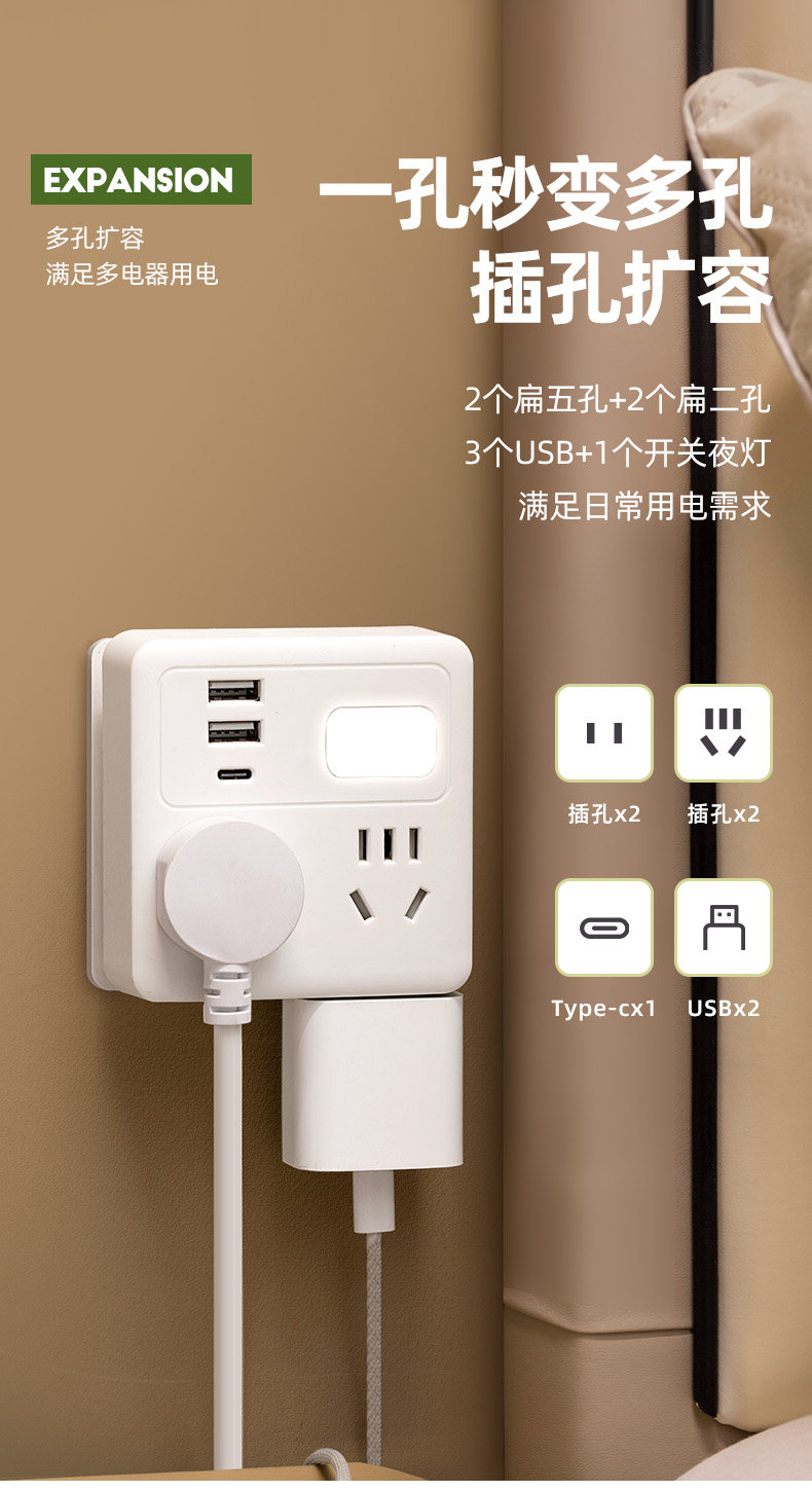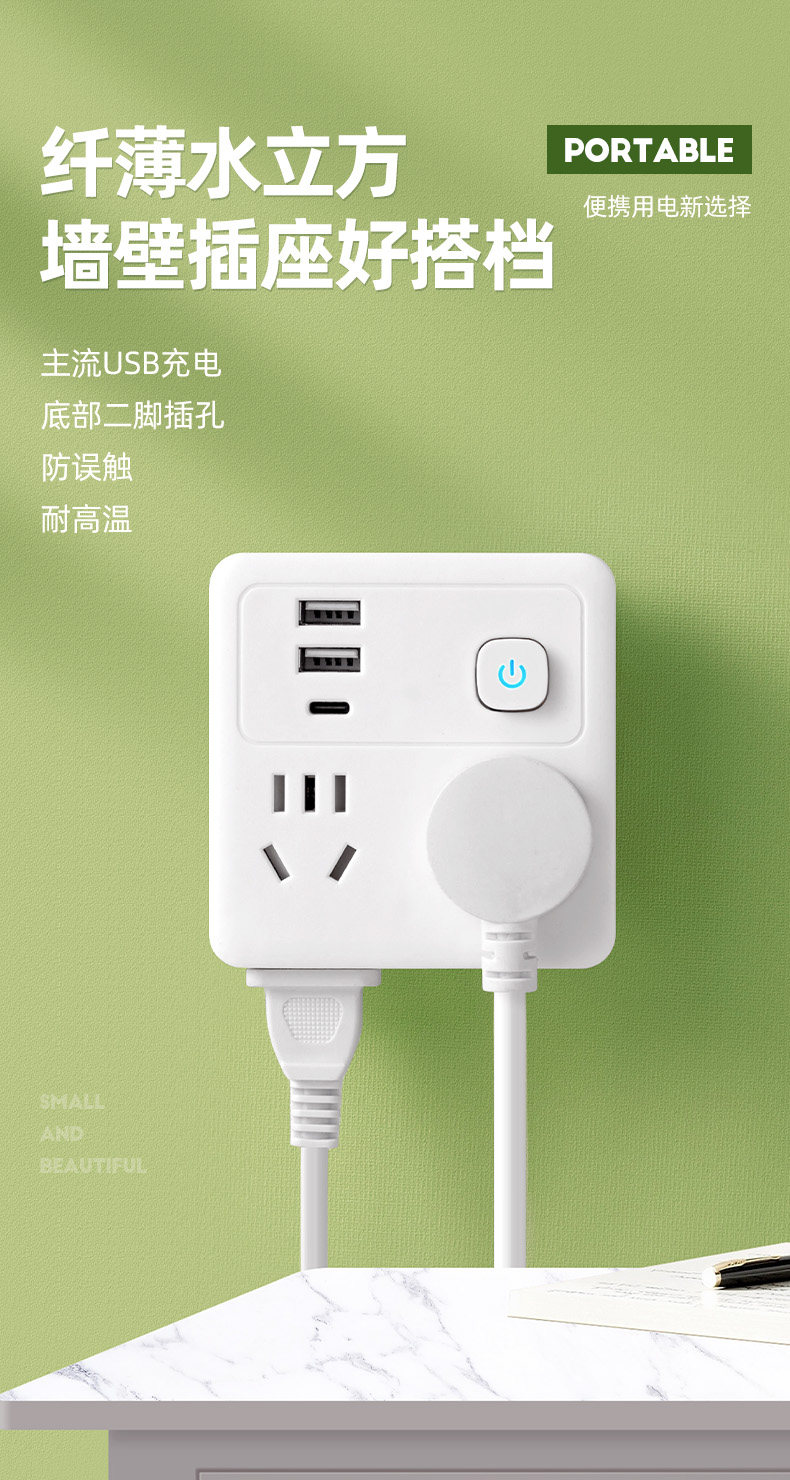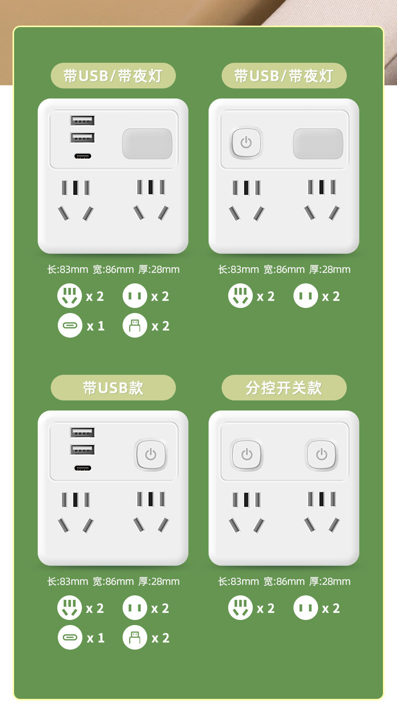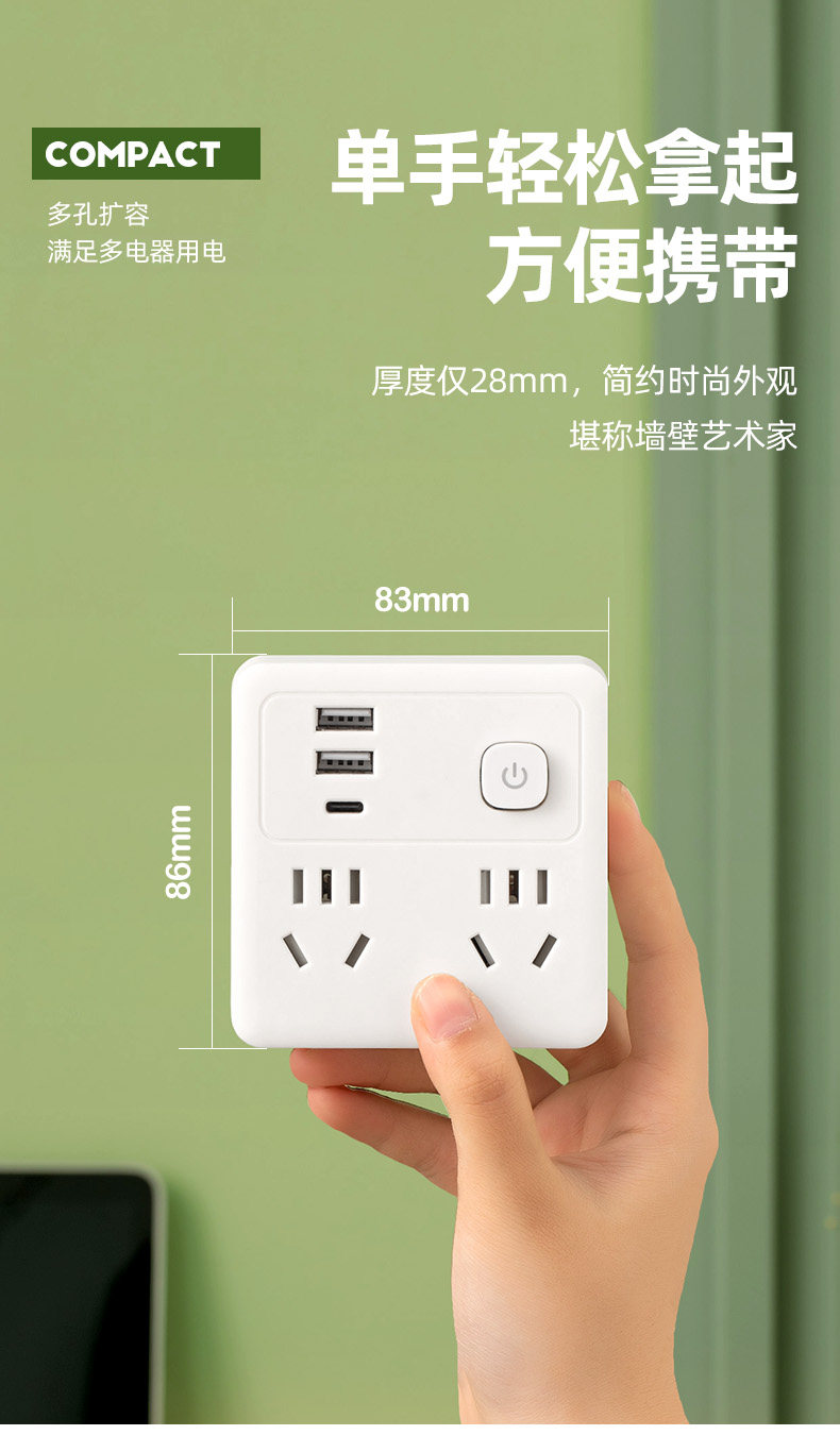 Pulu 86 Type Ultra-Thin Socket Converter Multifunctional One-To-Many Extension Power Strip Converter Plug Household USB Fast Charging 20W Panel Converter Socket Plug Power Strip Panel Fast Charging Power Strip