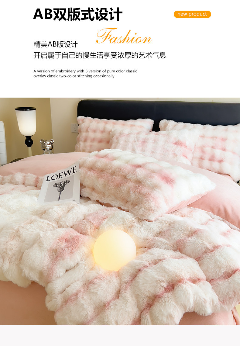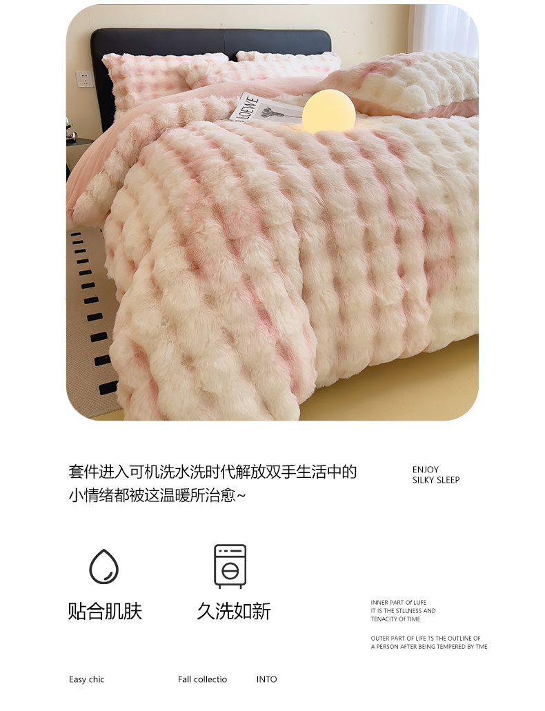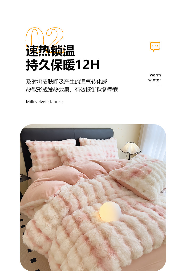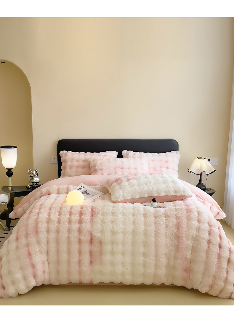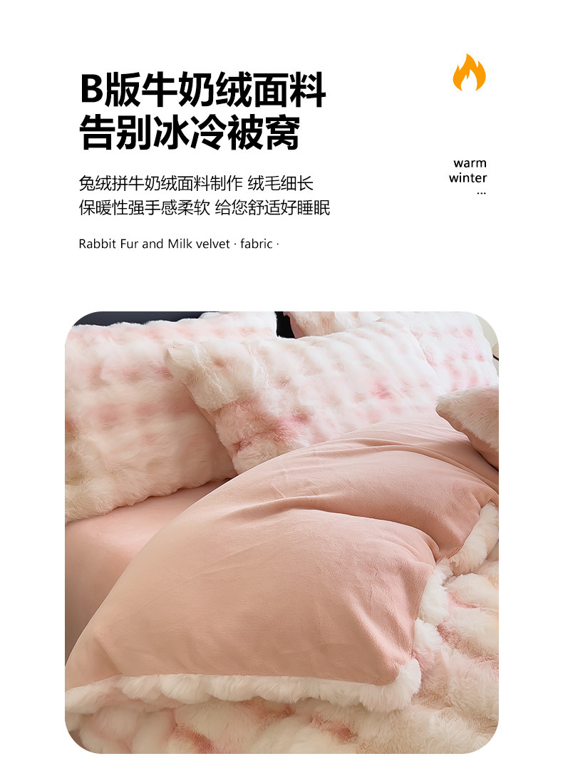 Yalu winter thickened rabbit plush four-piece set light luxury plus velvet milk velvet bed sheet three-piece set 2024 new bedding