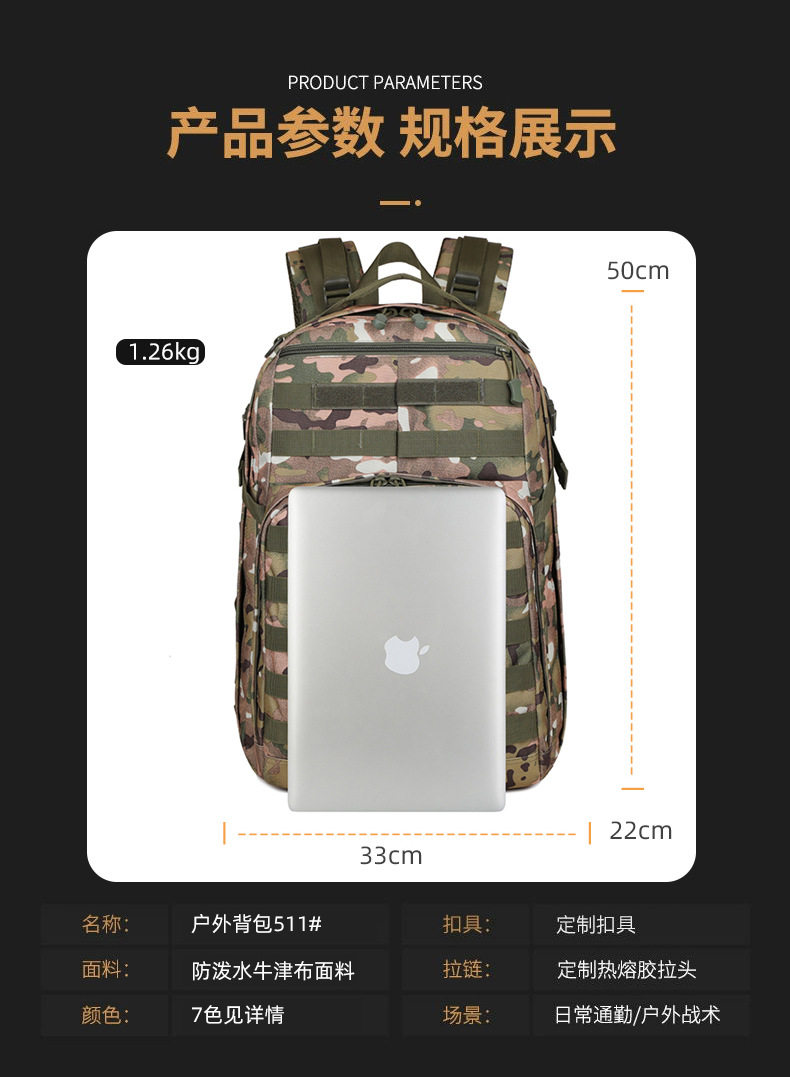 Outdoor Tactical Backpack Large Capacity Unisex Cycling and Mountaineering Backpack Field Combat 12 Sports Assault Large Backpack