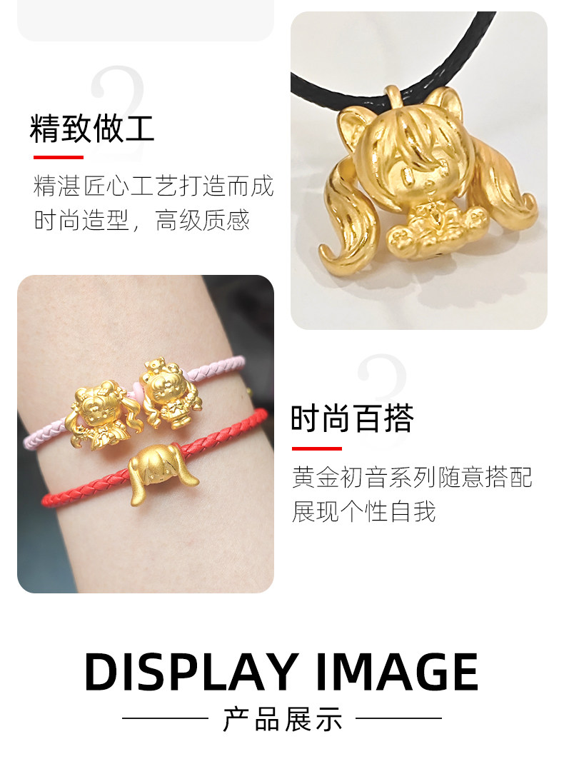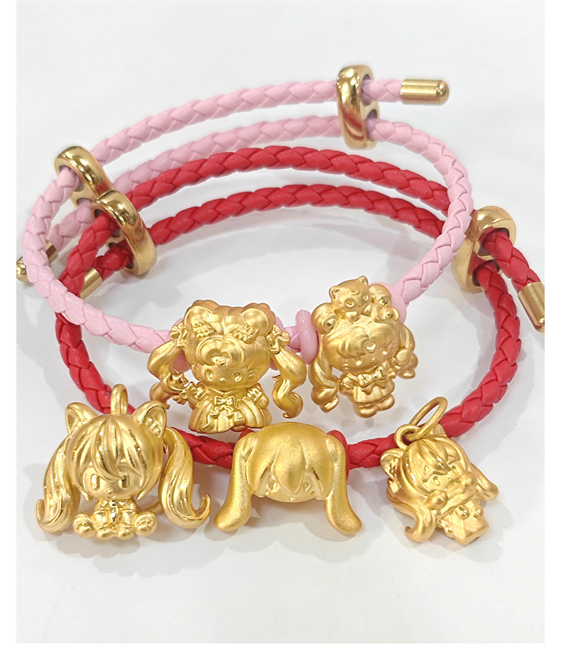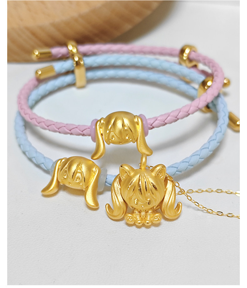 999 Gold Bracelet Vocaloid Hatsune Miku Pure Gold Pendant for Women Anime Miku Red String Fortune Bead