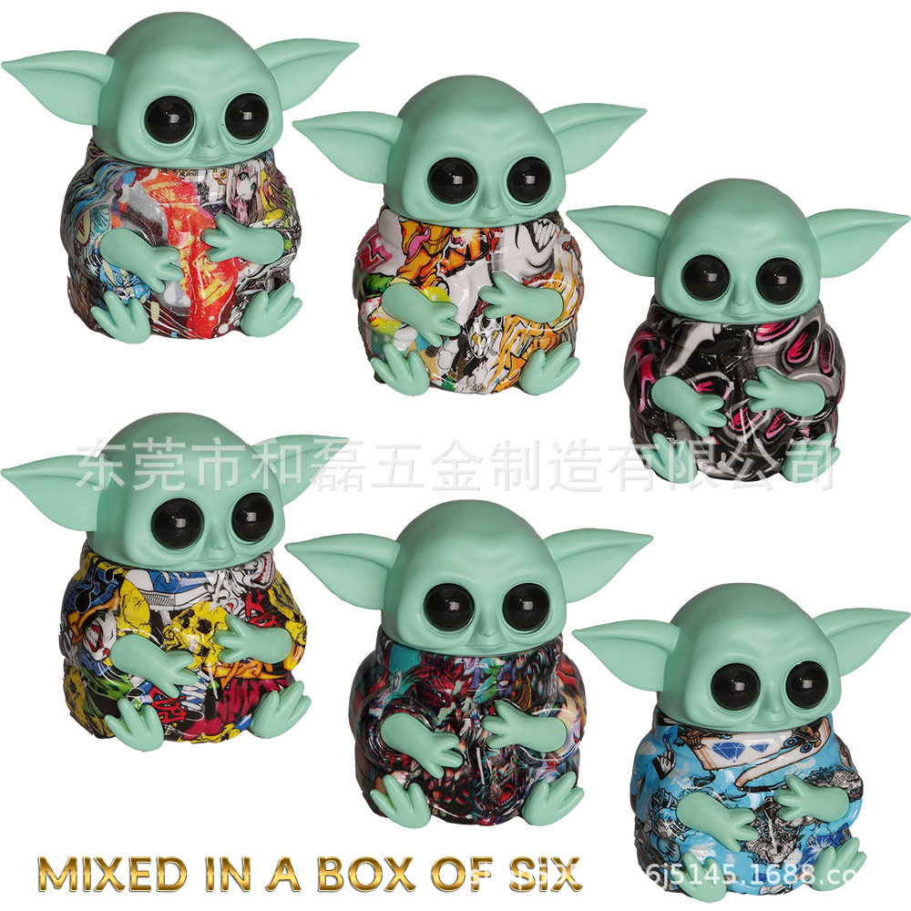 New product Baby Yoda cigarette grinder Cross-border creative tobacco grinder 3-layer plastic zinc alloy sharp teeth