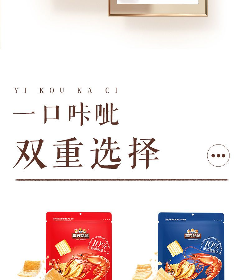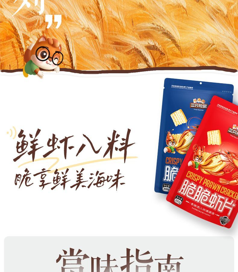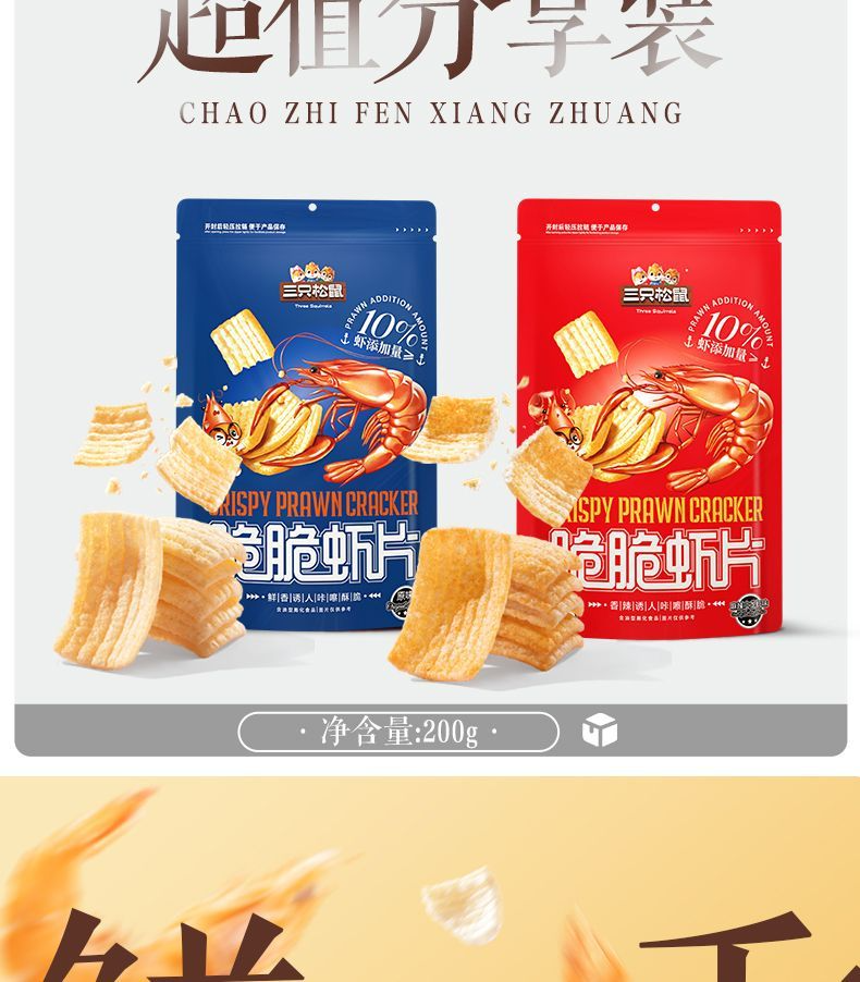 Three Squirrels Crispy Shrimp Chips 200g*1 Bag Casual Snack Spicy Crayfish Flavor Original Flavor Great Value