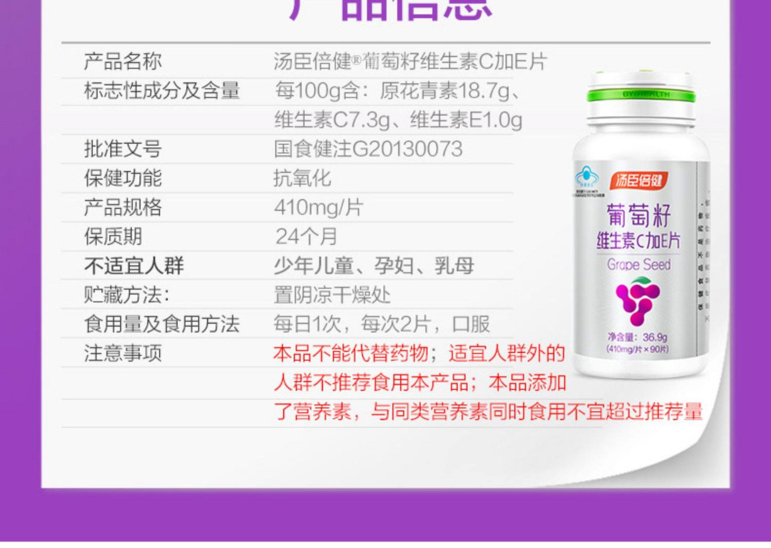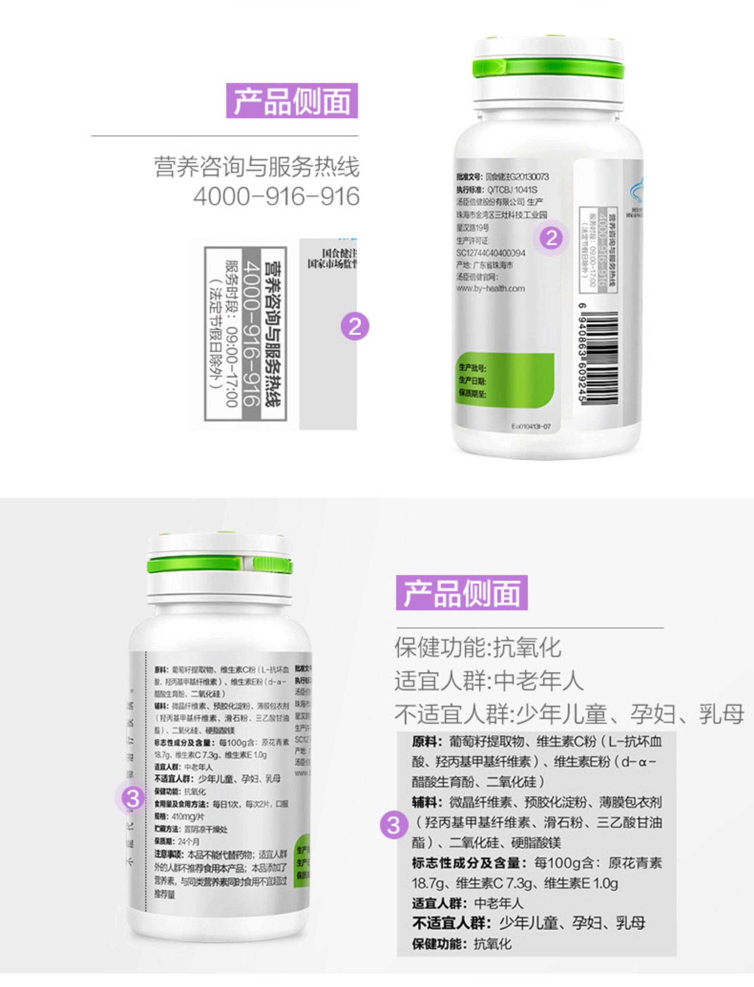 Tomson By-Health Grape Seed Proanthocyanidin Antioxidant Extract Vitamin C Plus E Tablets Official Genuine Product