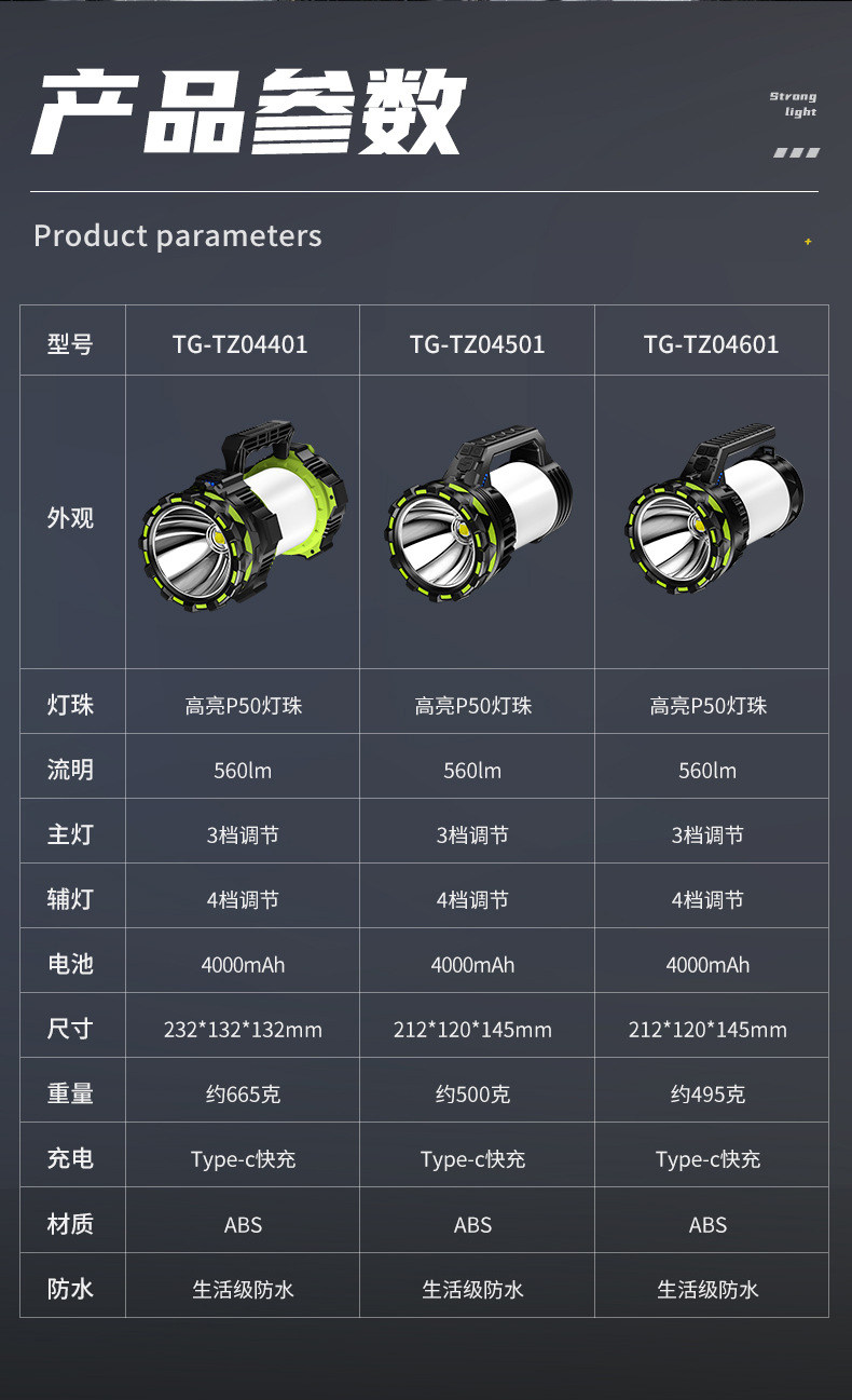 Sort by color TZ04401 foldable handle, bright long-range/high-brightness side light,TZ04501 closed handle, bright long-range/high-brightness side light,TZ04601 open handle, bright long-range/high-brightness side light