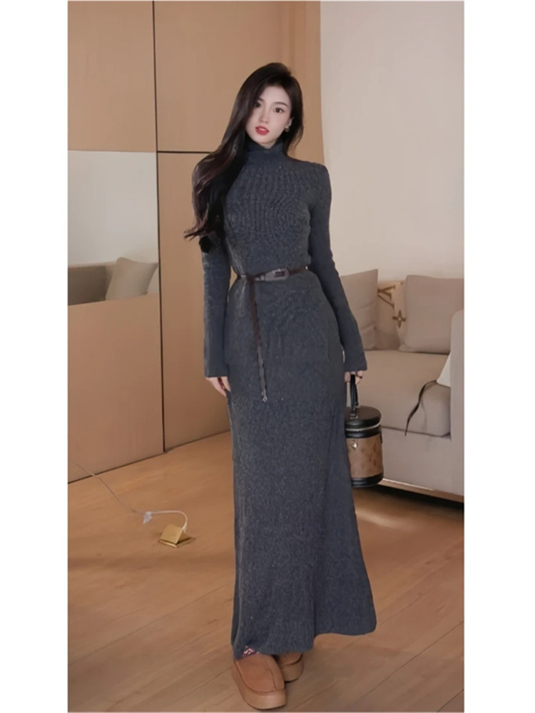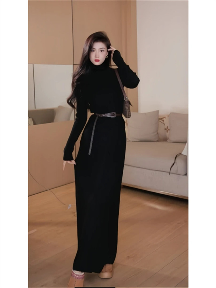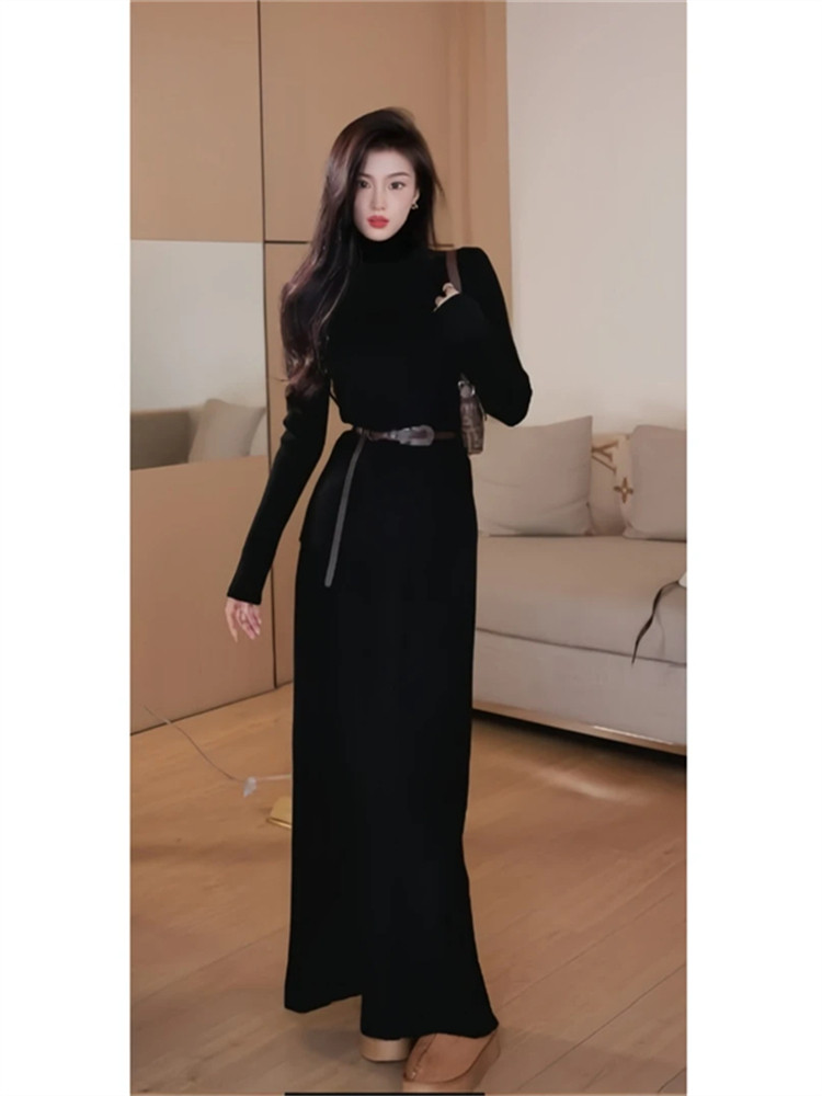 Retro lazy style suit for women, half turtleneck sweater, a complete set of ootd wear, new trendy knitted skirt