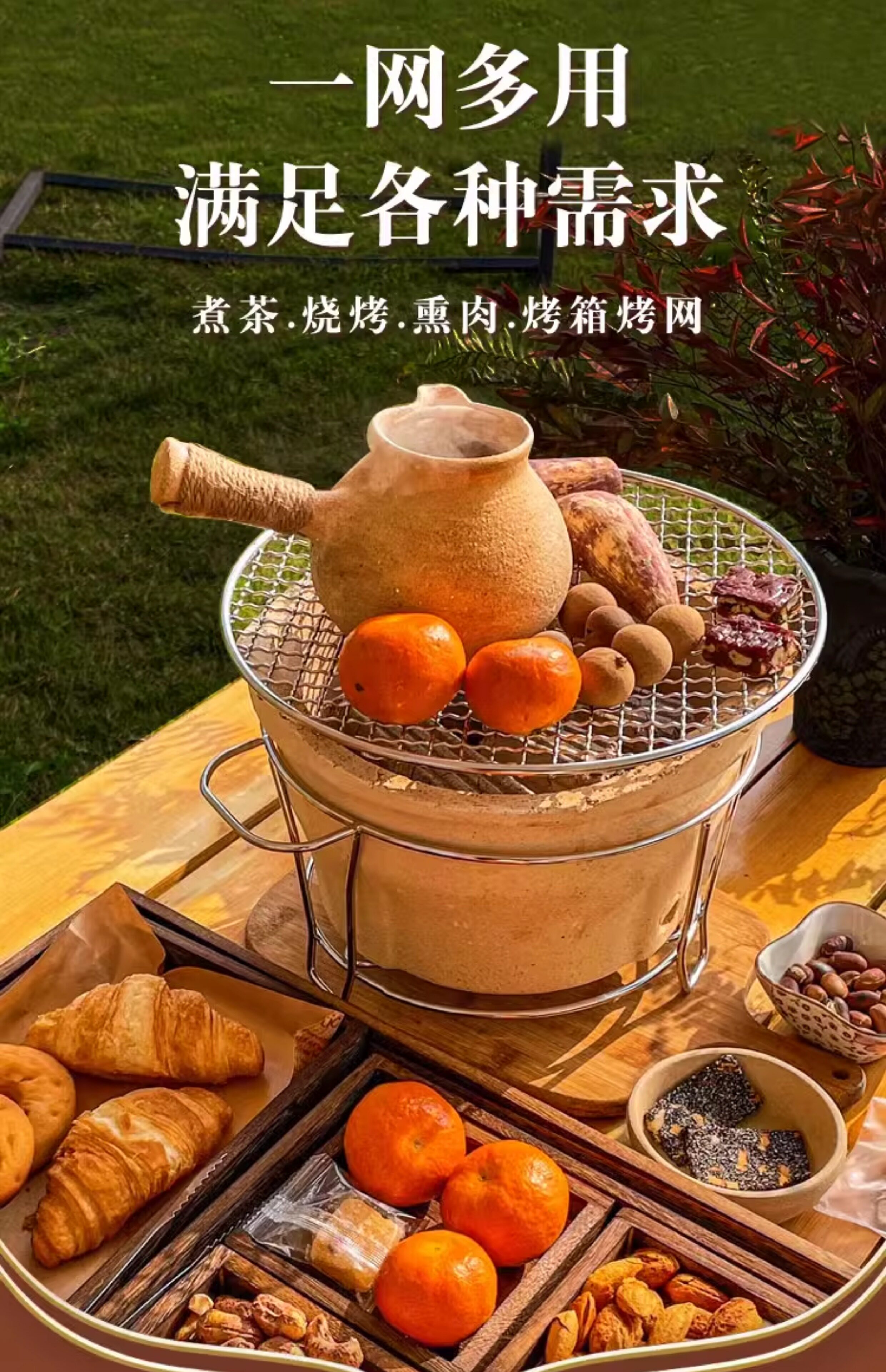 Round grilling mesh around the stove for tea making and barbecue mesh electric ceramic stove stainless steel with feet around the stove mesh thick barbecue grill