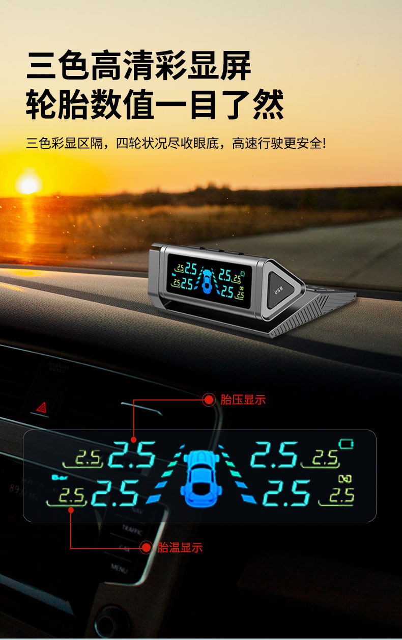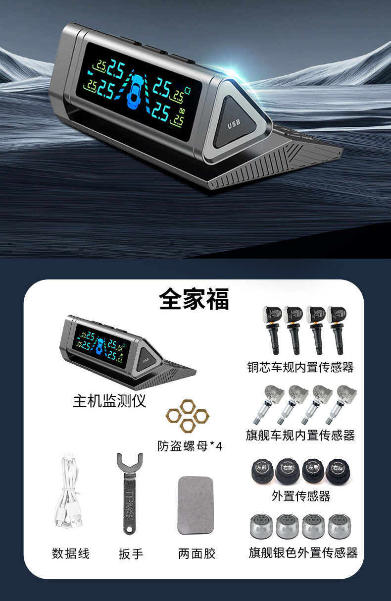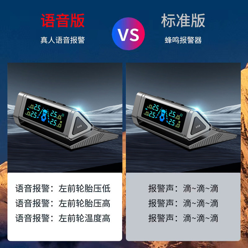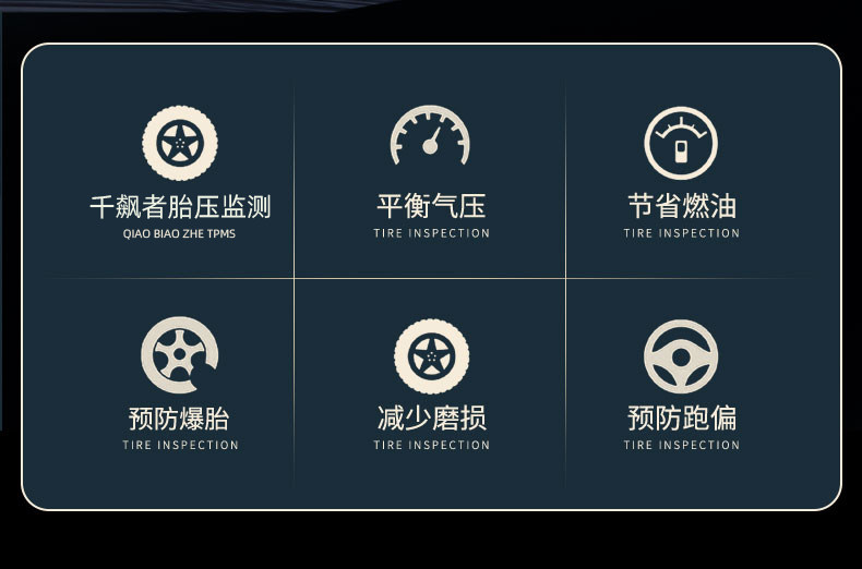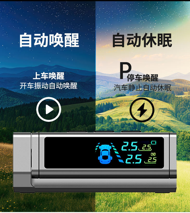 Qianbiaozhe Tire Pressure Monitor Solar Tire Pressure Detector Wireless Car Built-In External High-Precision Sensor
