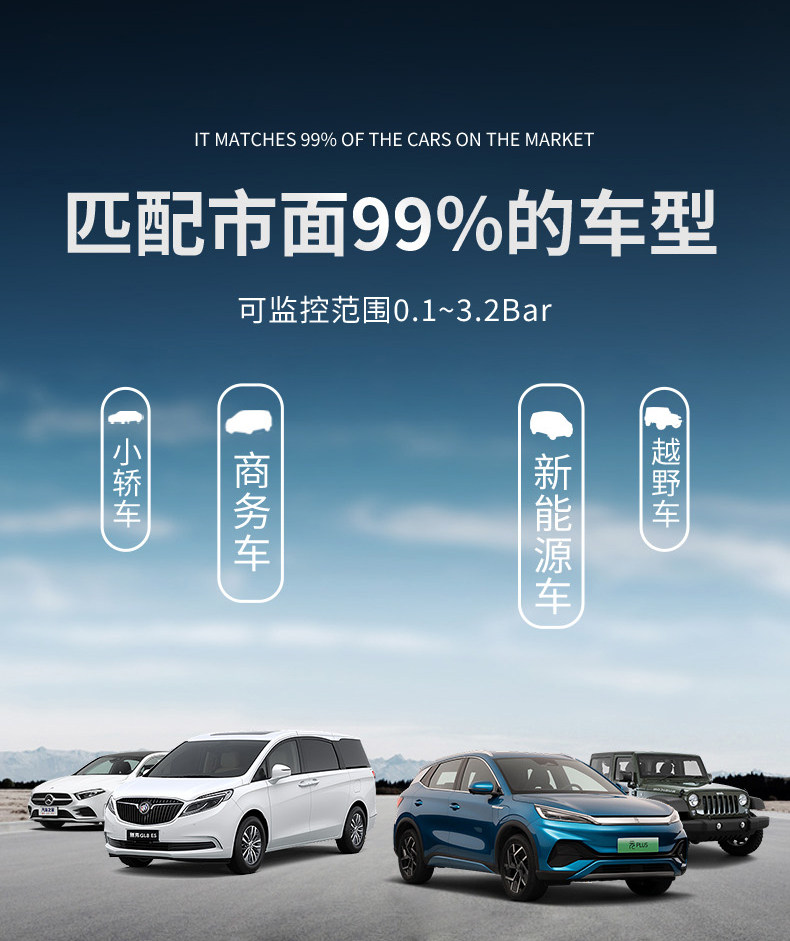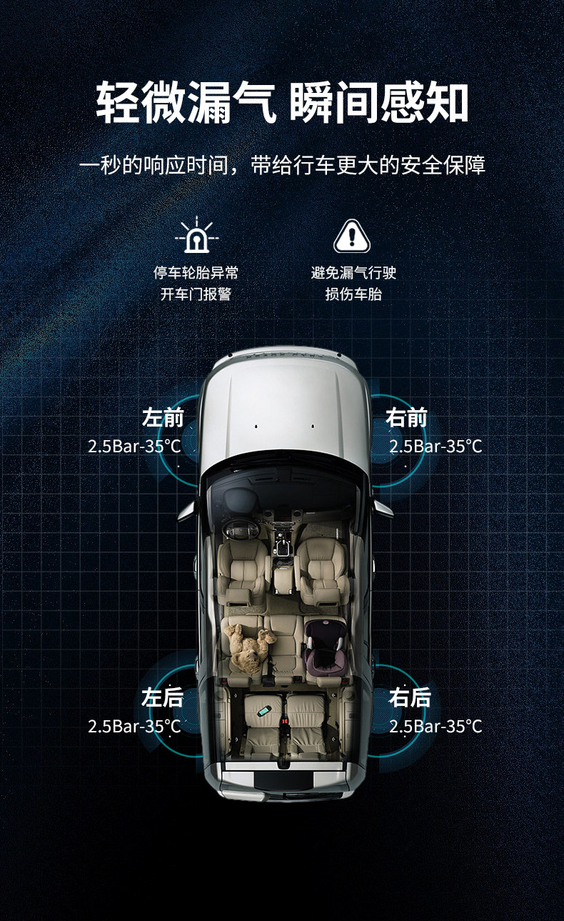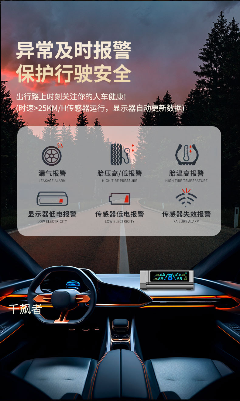 Qianbiaozhe Tire Pressure Monitor Solar Tire Pressure Detector Wireless Car Built-In External High-Precision Sensor