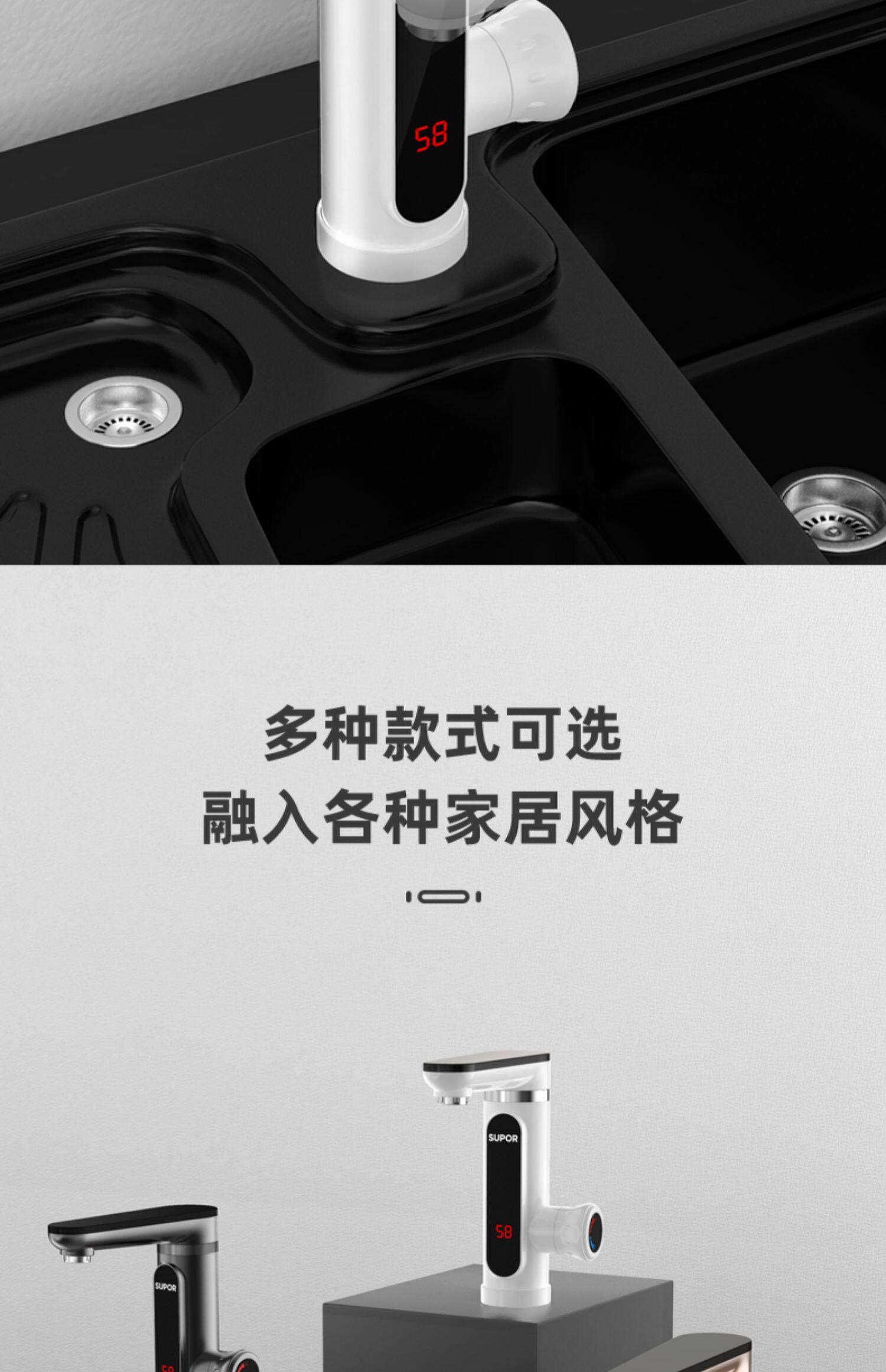 Supor Electric Hot Water Faucet for Home Use, Instant Heating for Kitchen, Balcony, Bathroom, Fast Water Heating, Small Water Heater