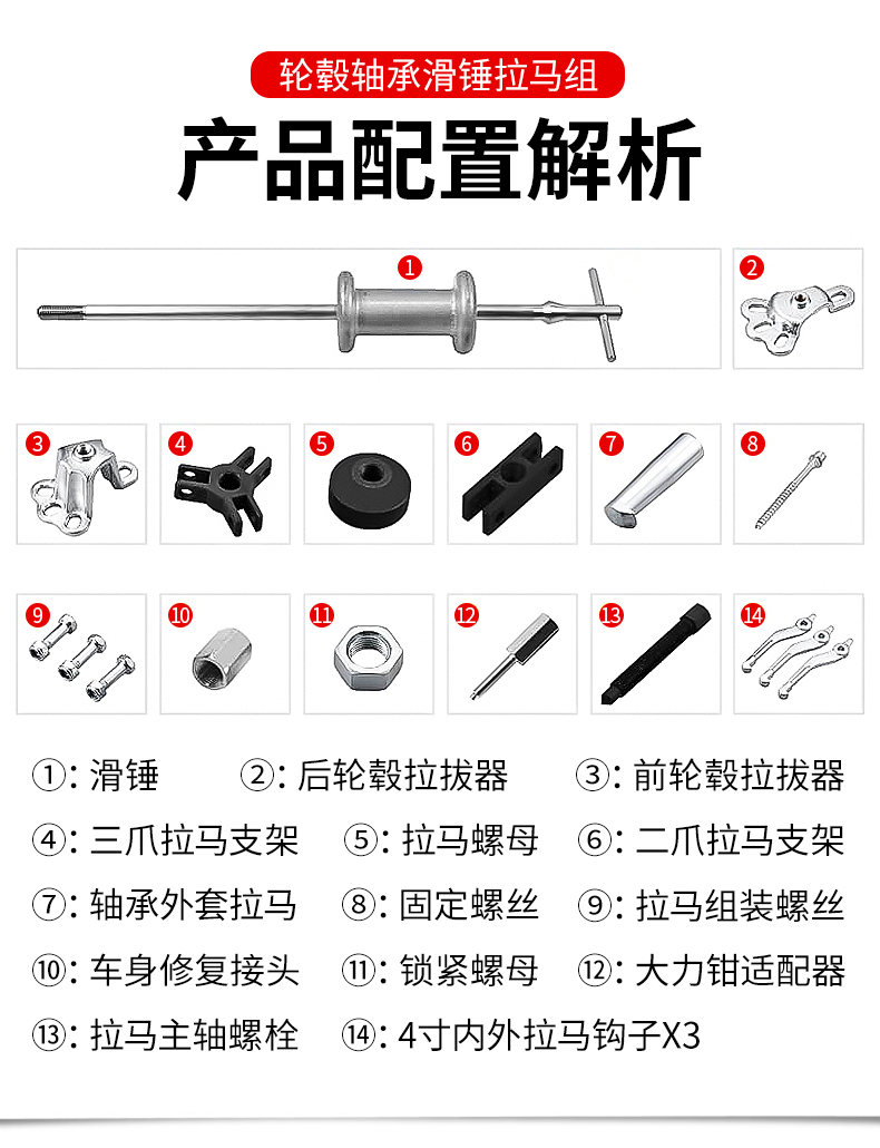 Color Classification 21-Piece Wheel Hub Bearing Slide Hammer Puller Set (Comes with a Pair of Gloves)
