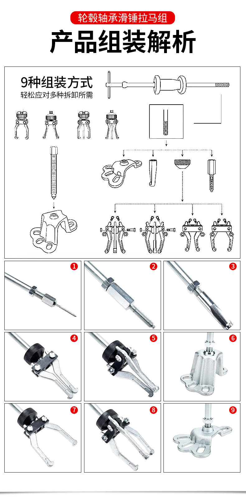 Car Wheel Hub Bearing Removal Slide Hammer Tool, Internal and External Two/Three-Jaw Puller, Rear Wheel Rear Axle Half-Shaft Puller