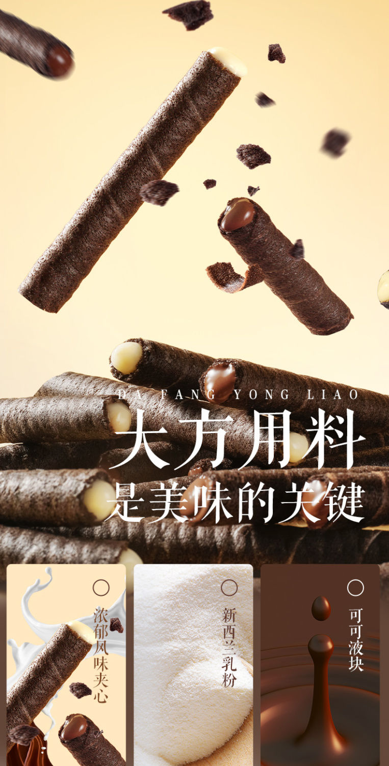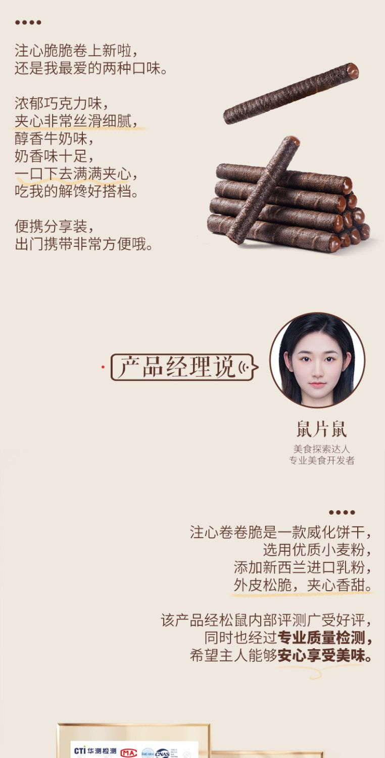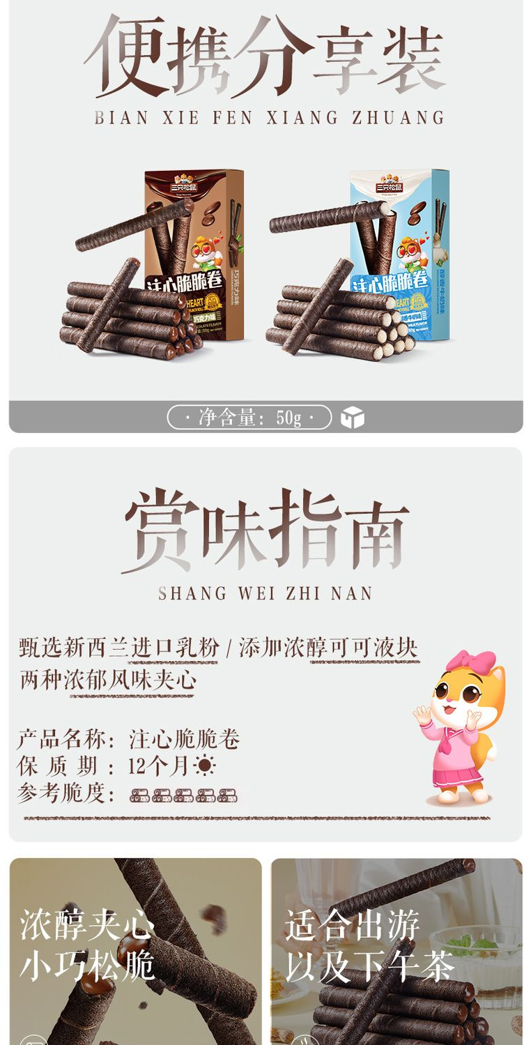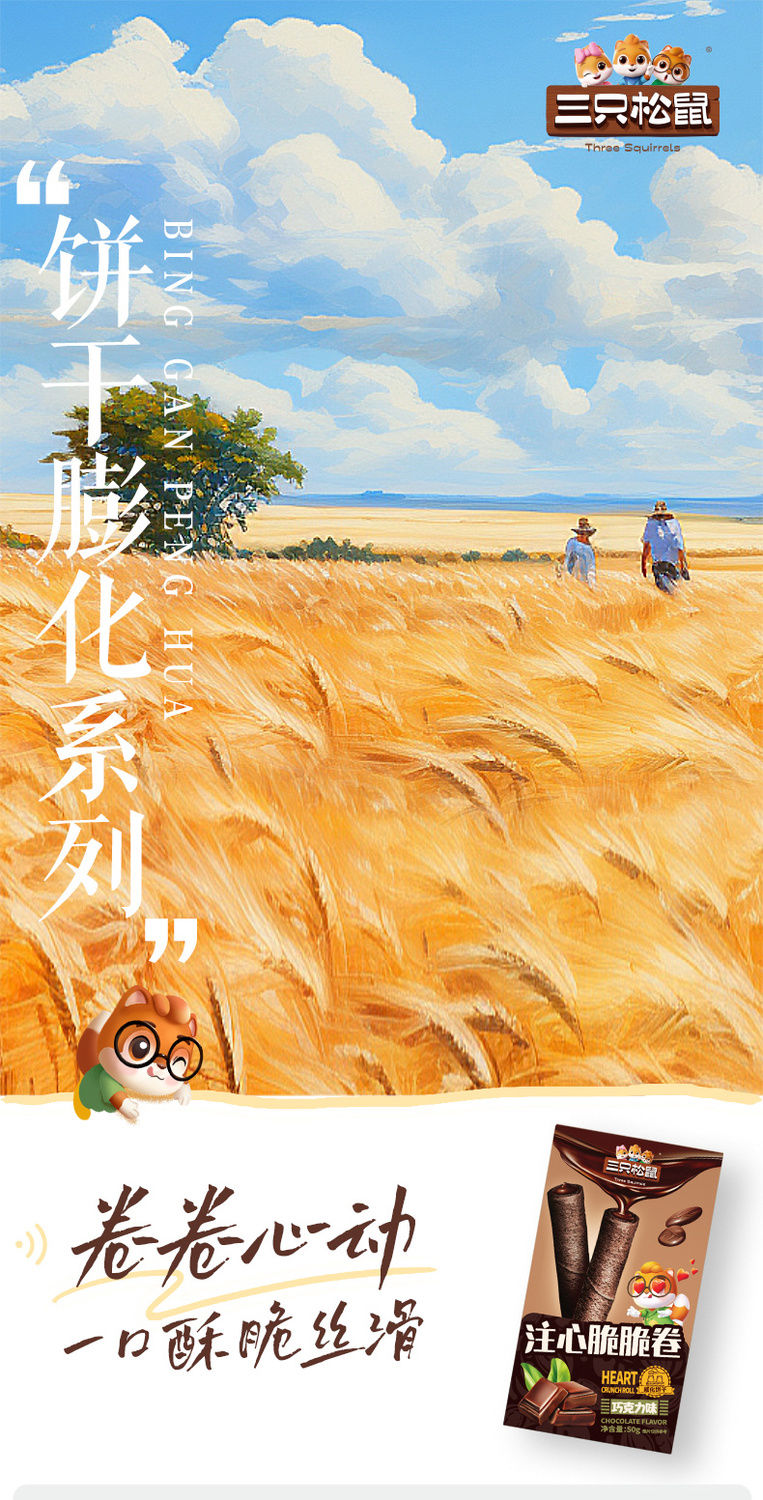 Three Squirrels Crispy Rolls 50g*3 Boxes Snack Food Egg Rolls Chocolate Rich Milk Flavor Crispy