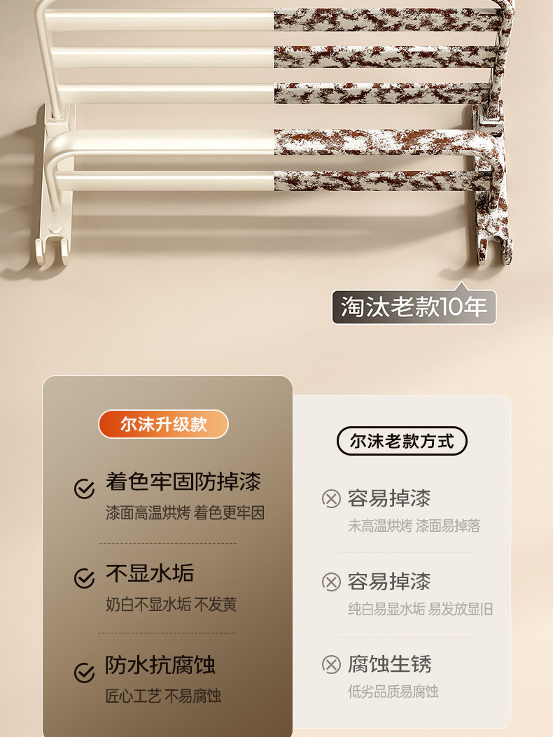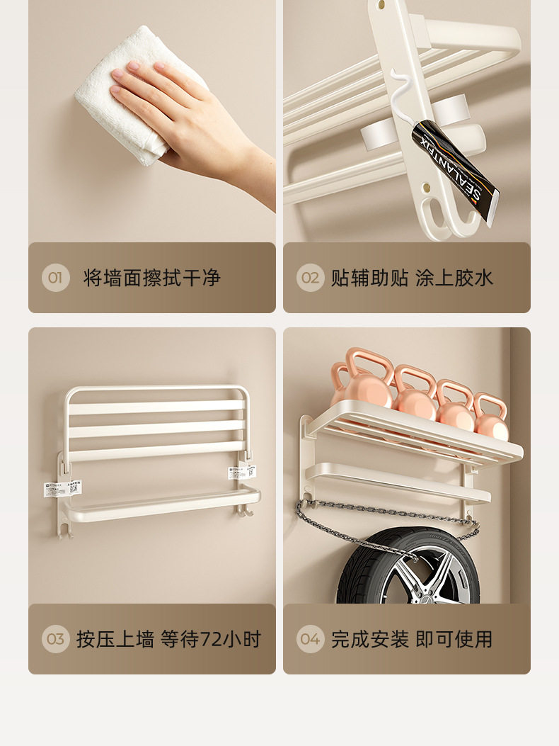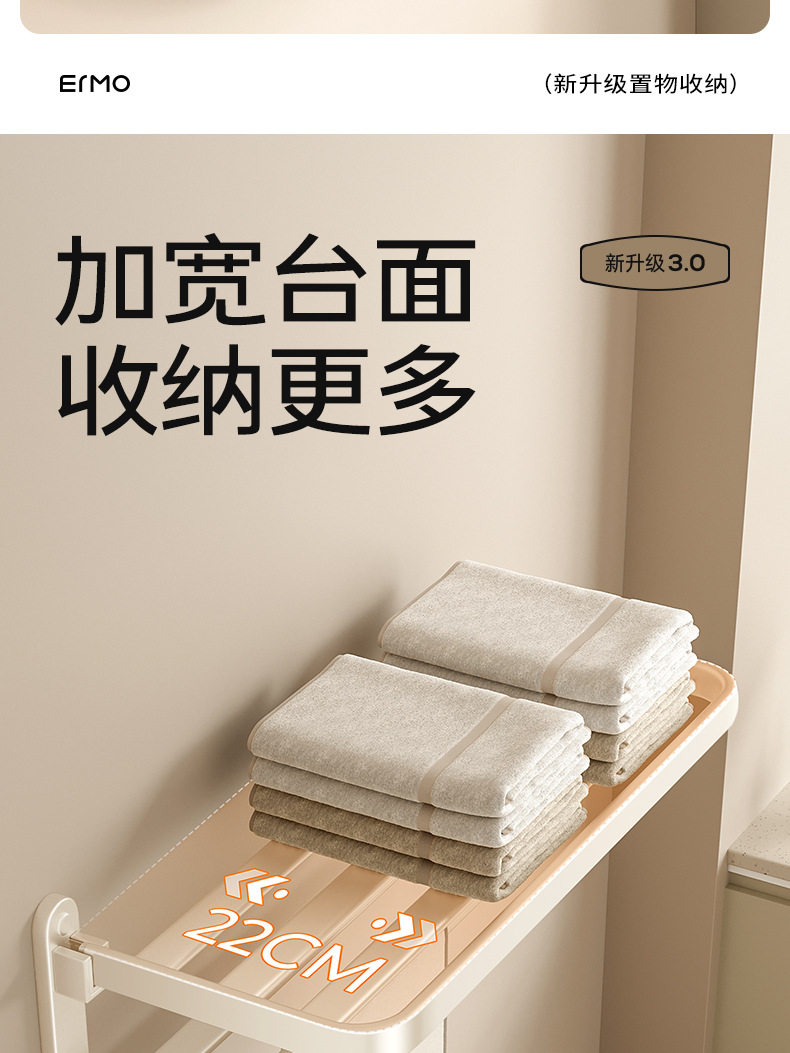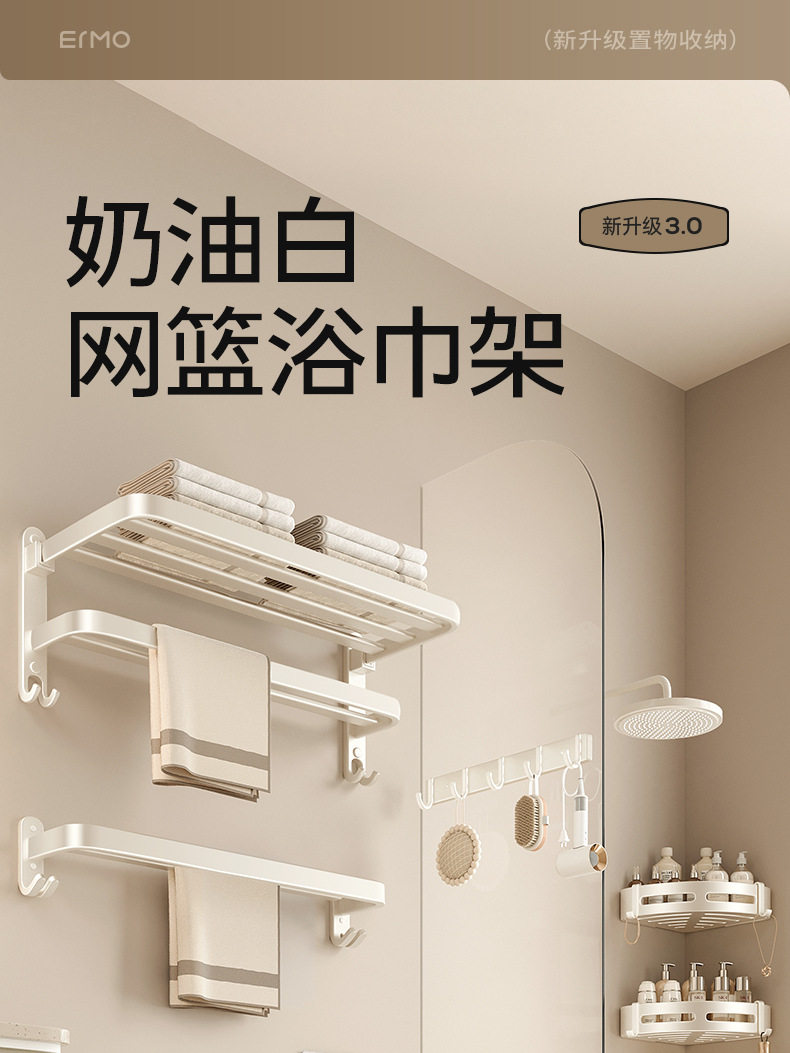 German Precision Cream-Colored Towel Rack, Bathroom No-Drill Towel Holder, Bathroom Space Aluminum Storage Hanging Rod
