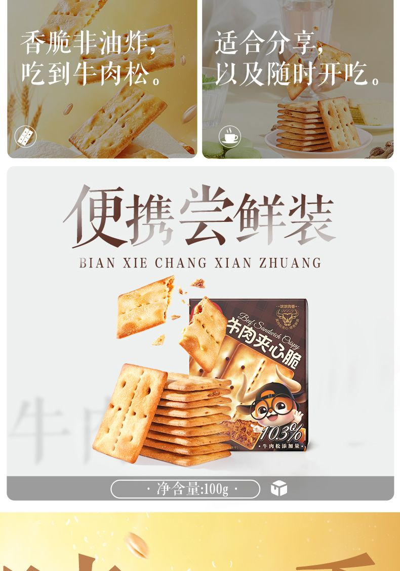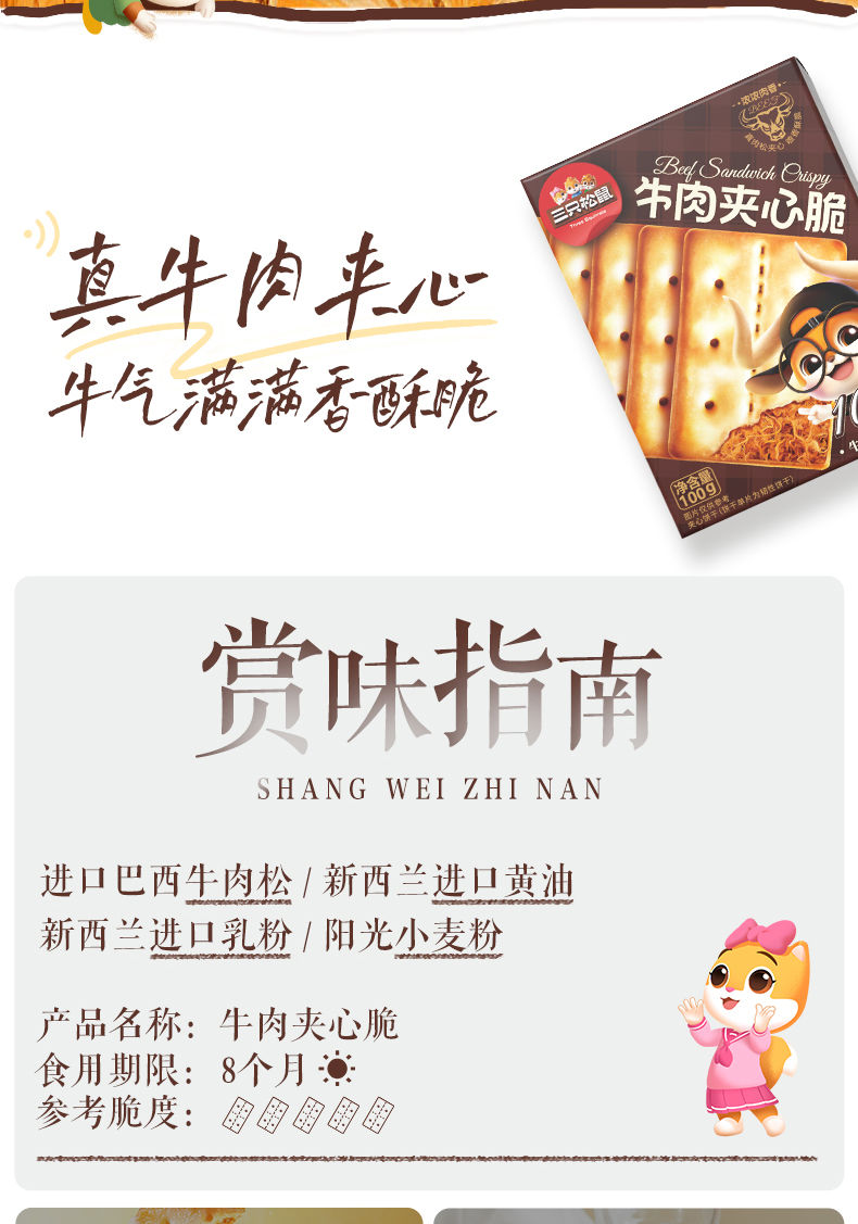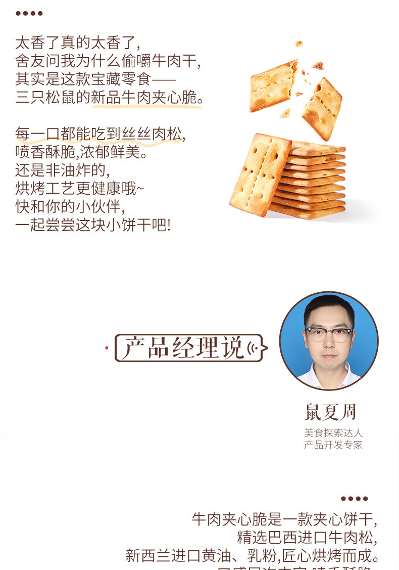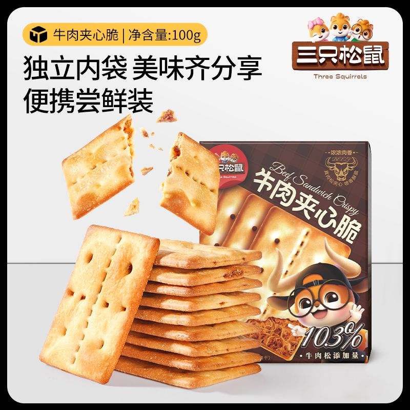Three Squirrels Beef Sandwich Crispy Biscuits 100g*1 Box Beef Floss Sandwich Crispy Biscuits Puff Pastry Snacks