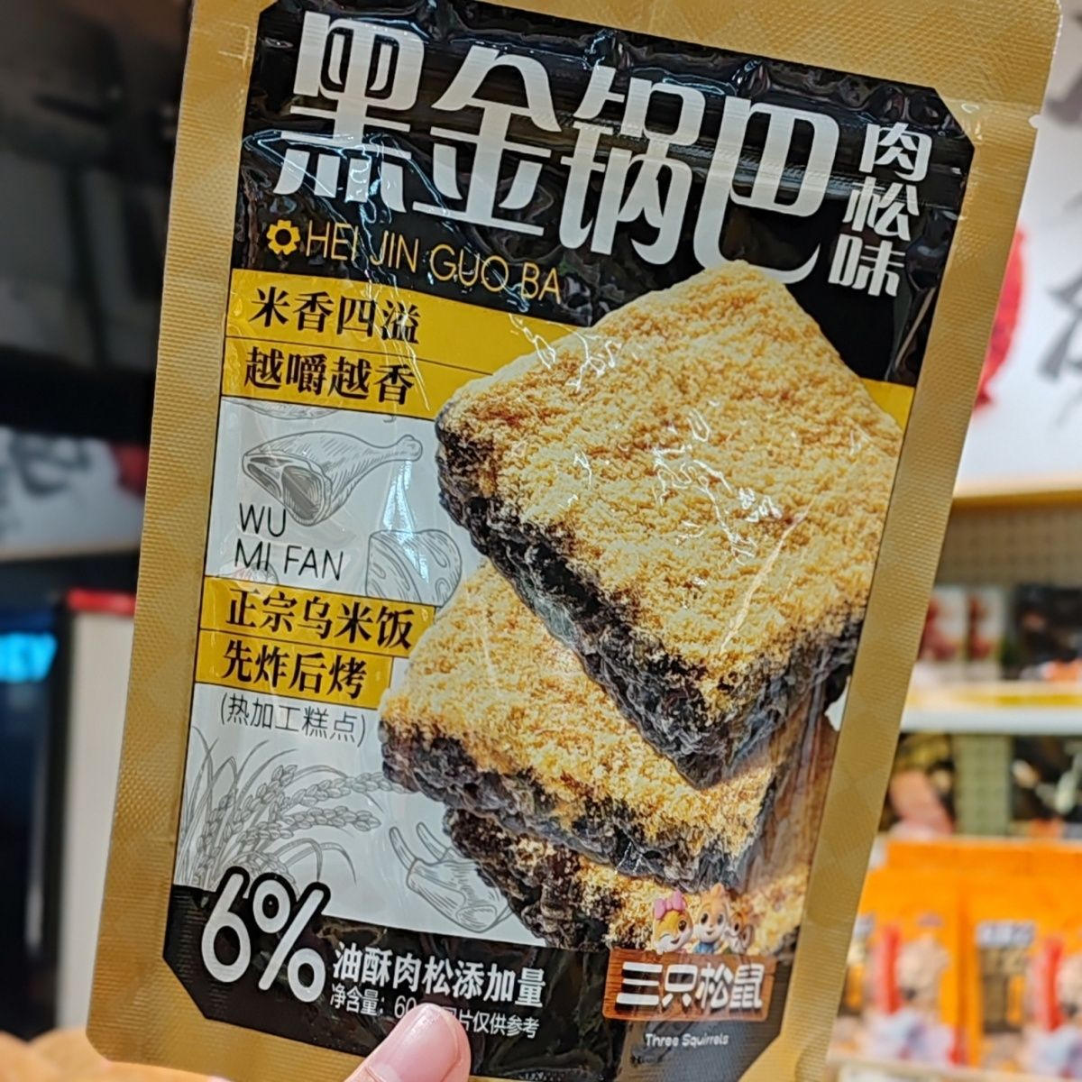 Three Squirrels Black Gold Crispy Rice Crackers with Meat Floss Flavor 60g/2 Bags, Crispy and Puffed, Dormitory Snacks, Affordable
