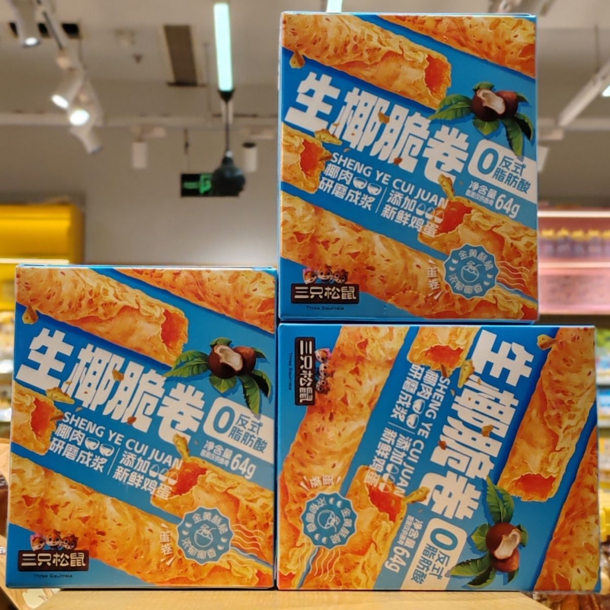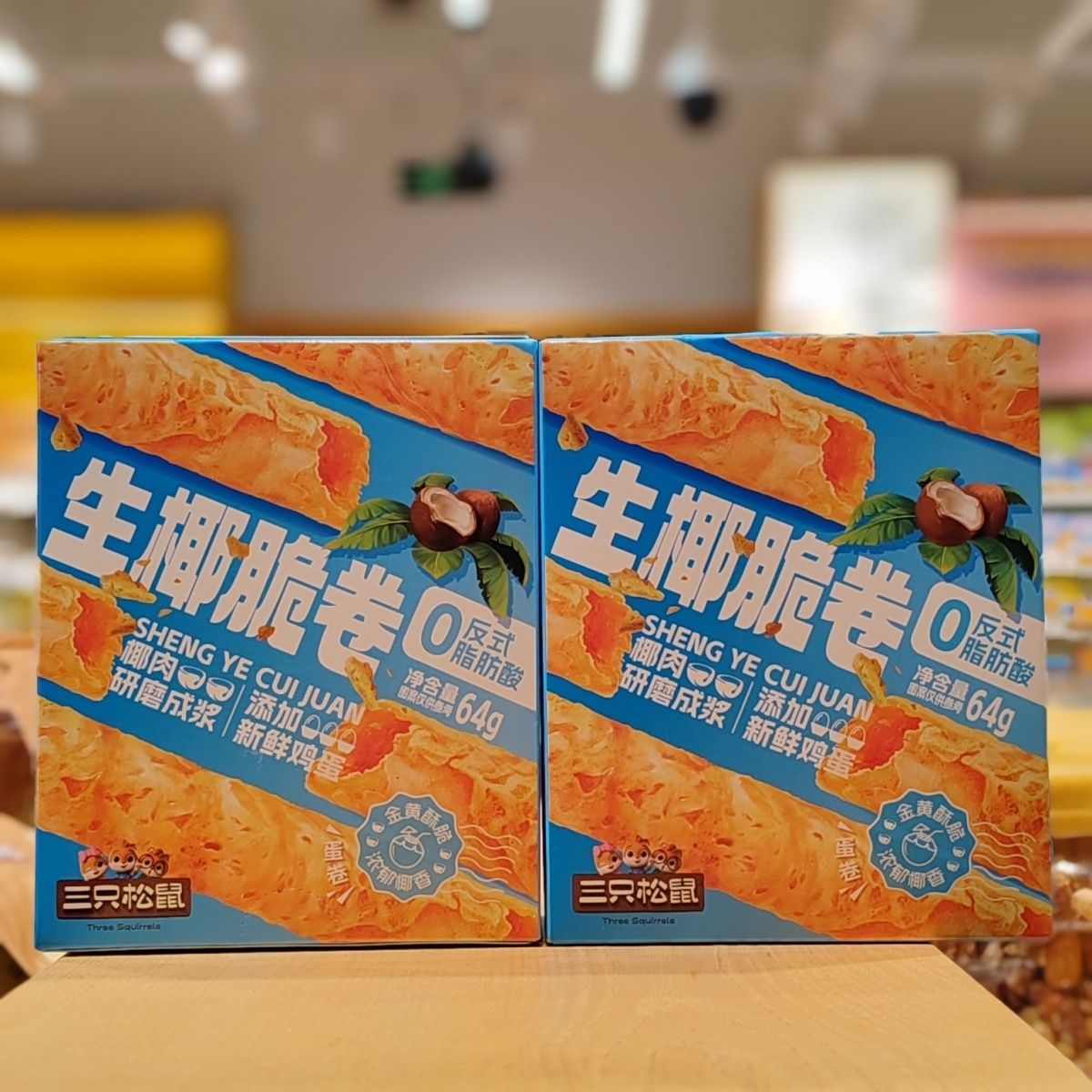 Three Squirrels Raw Coconut Crispy Rolls Coconut Flavor 60g Golden Crispy Rich Coconut Fragrance Casual Snack Egg Rolls