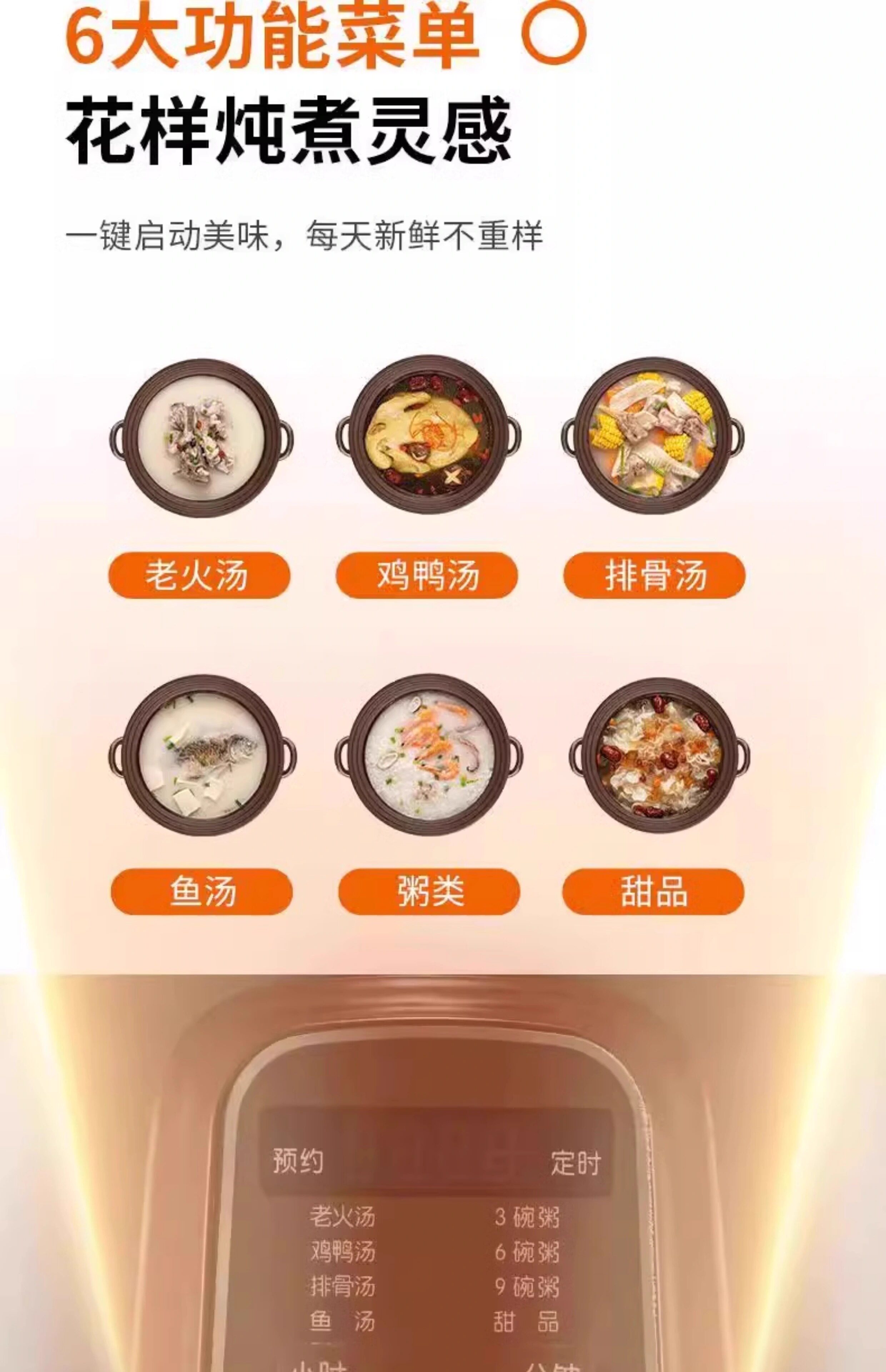 Menu Function Cook Multigrain Porridge,Cook White Porridge,Make Nutritious Soup,Stewed Desserts