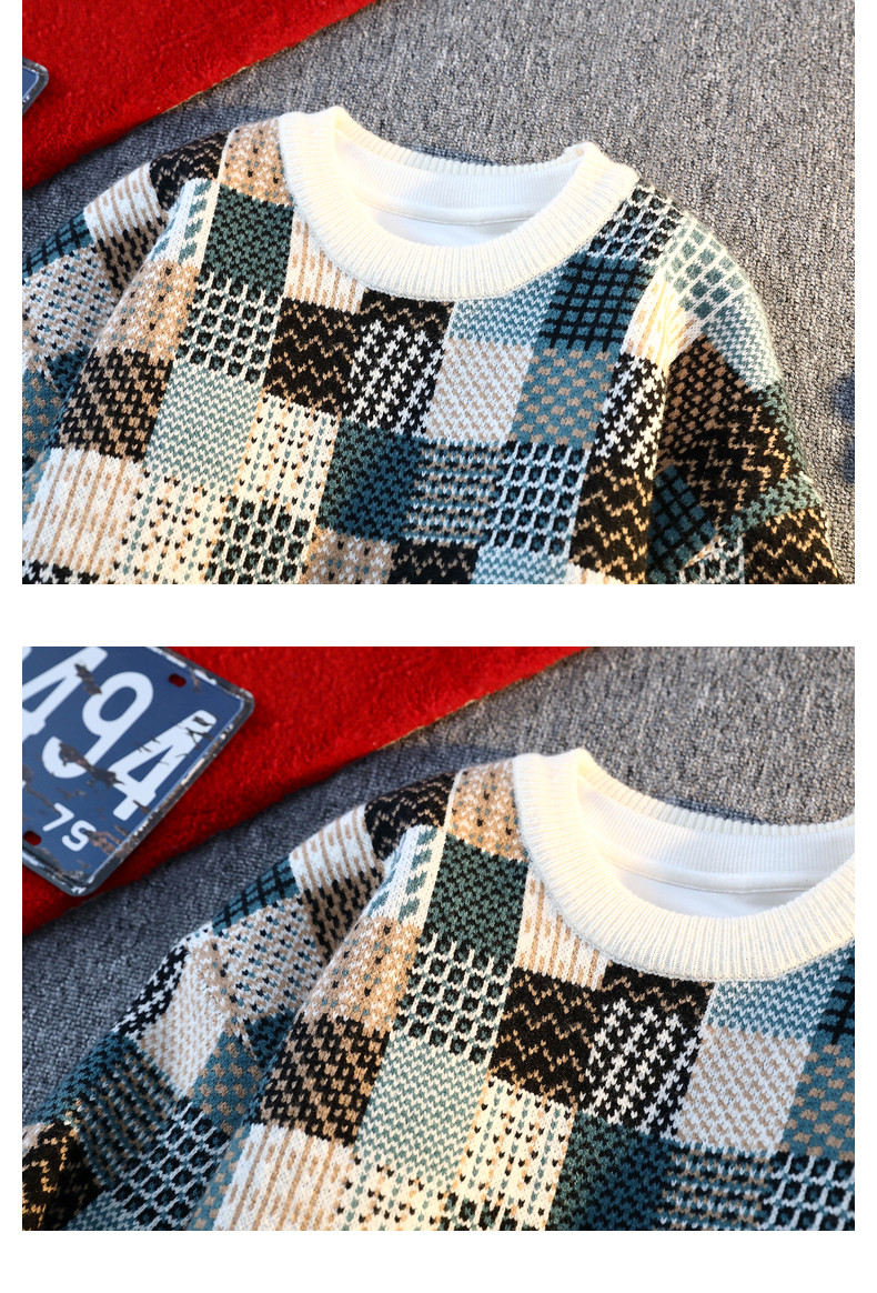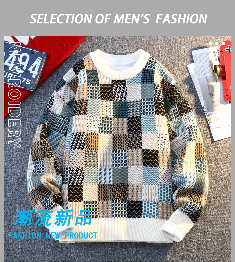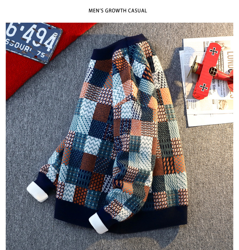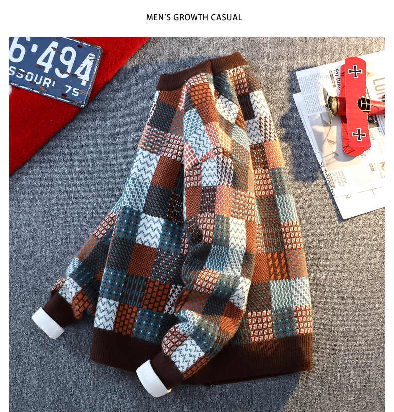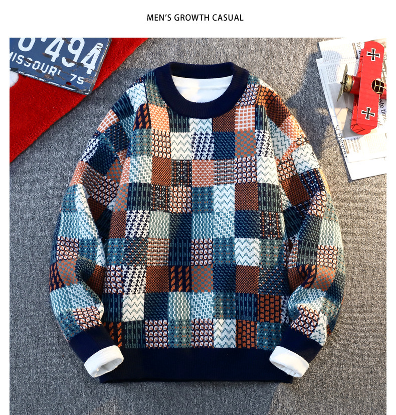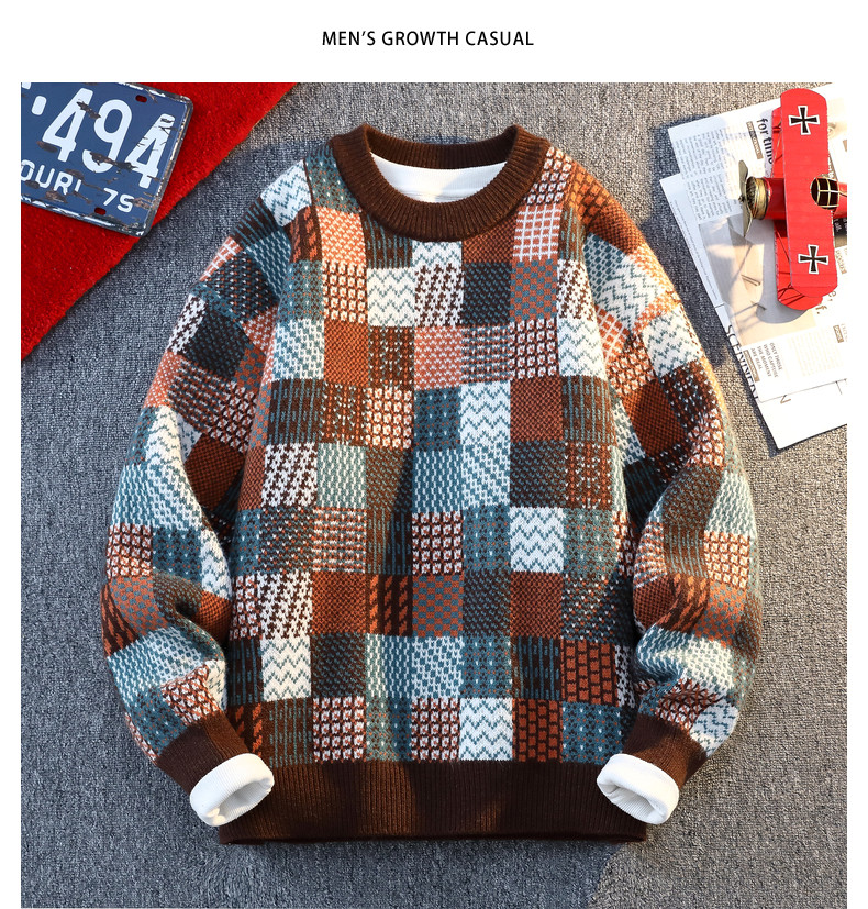 Retro Sweater Men's Winter Thickeneded Warm Knitted Knitwear Men's Base Layer Shirt Youth Trendy Brand Jacquard Pullover Knitwear
