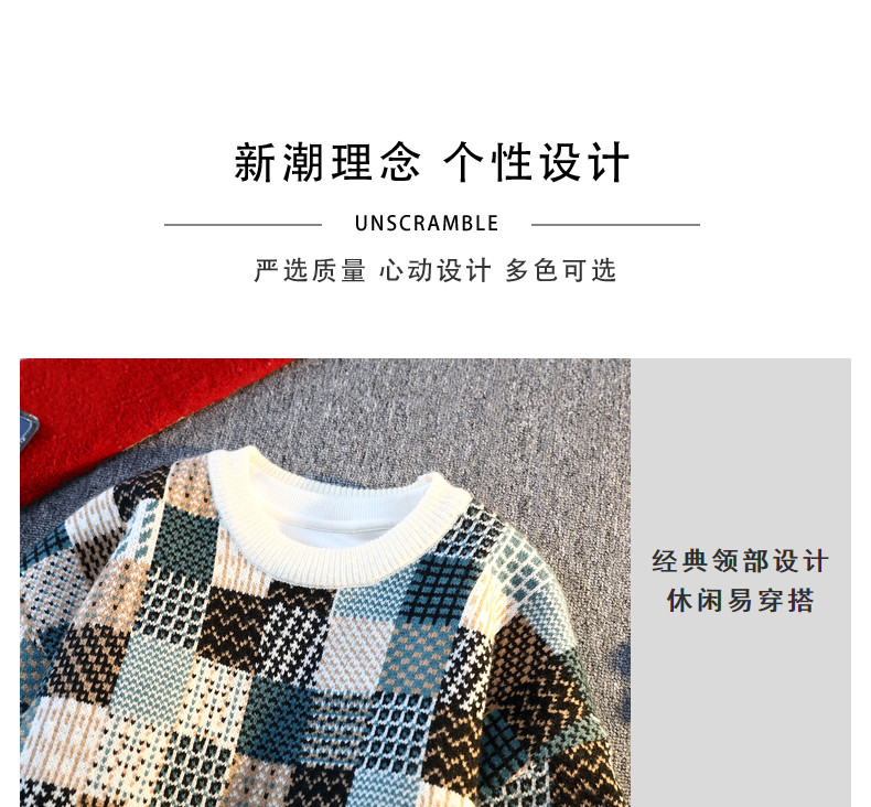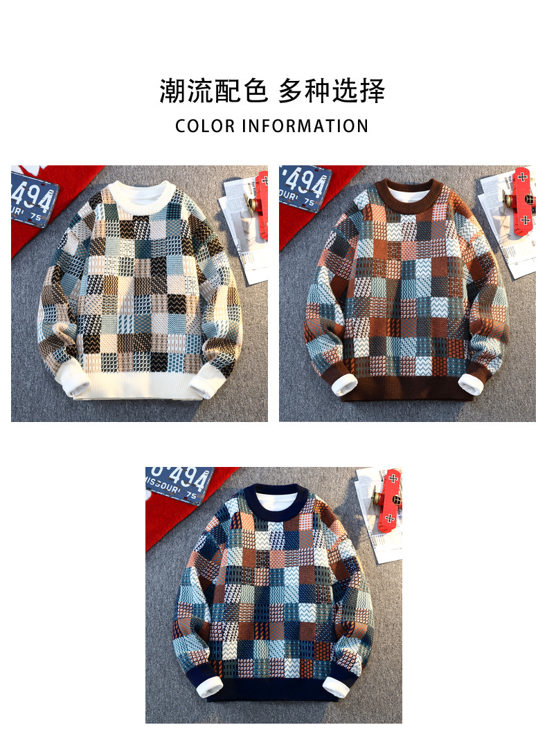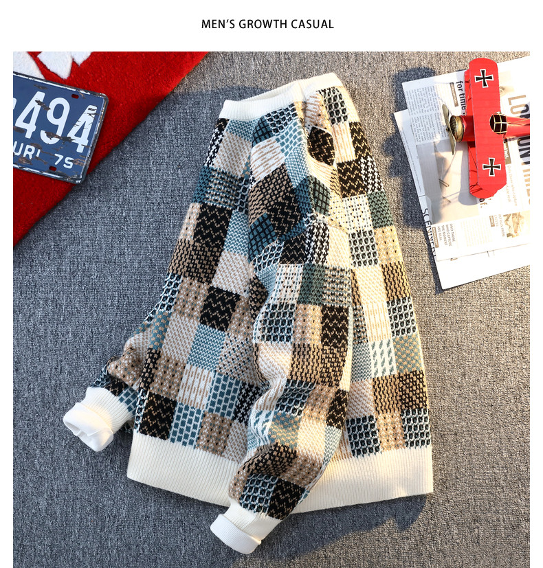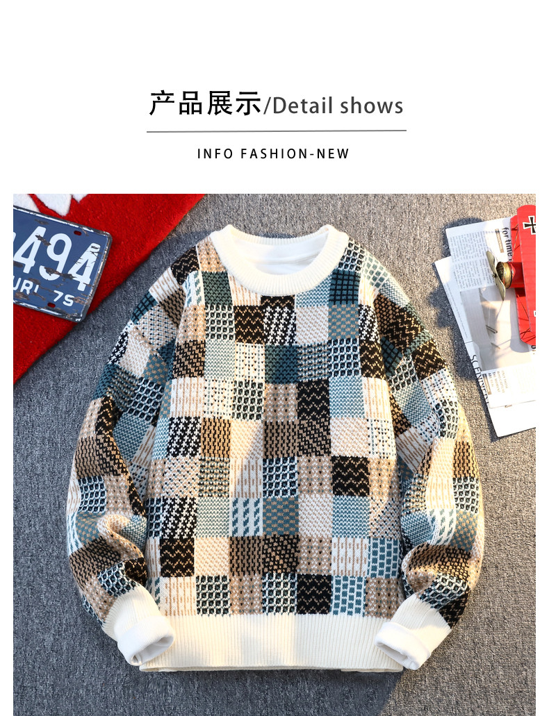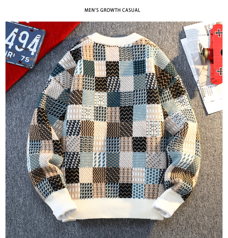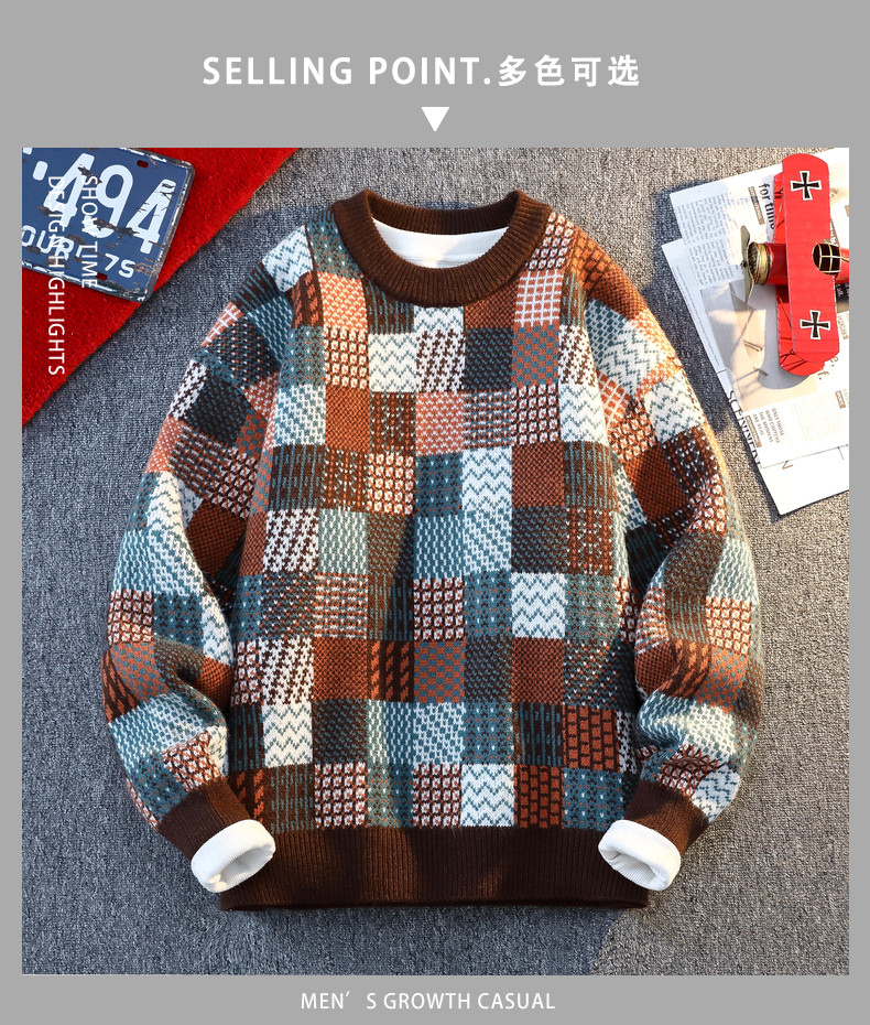 Retro Sweater Men's Winter Thickeneded Warm Knitted Knitwear Men's Base Layer Shirt Youth Trendy Brand Jacquard Pullover Knitwear