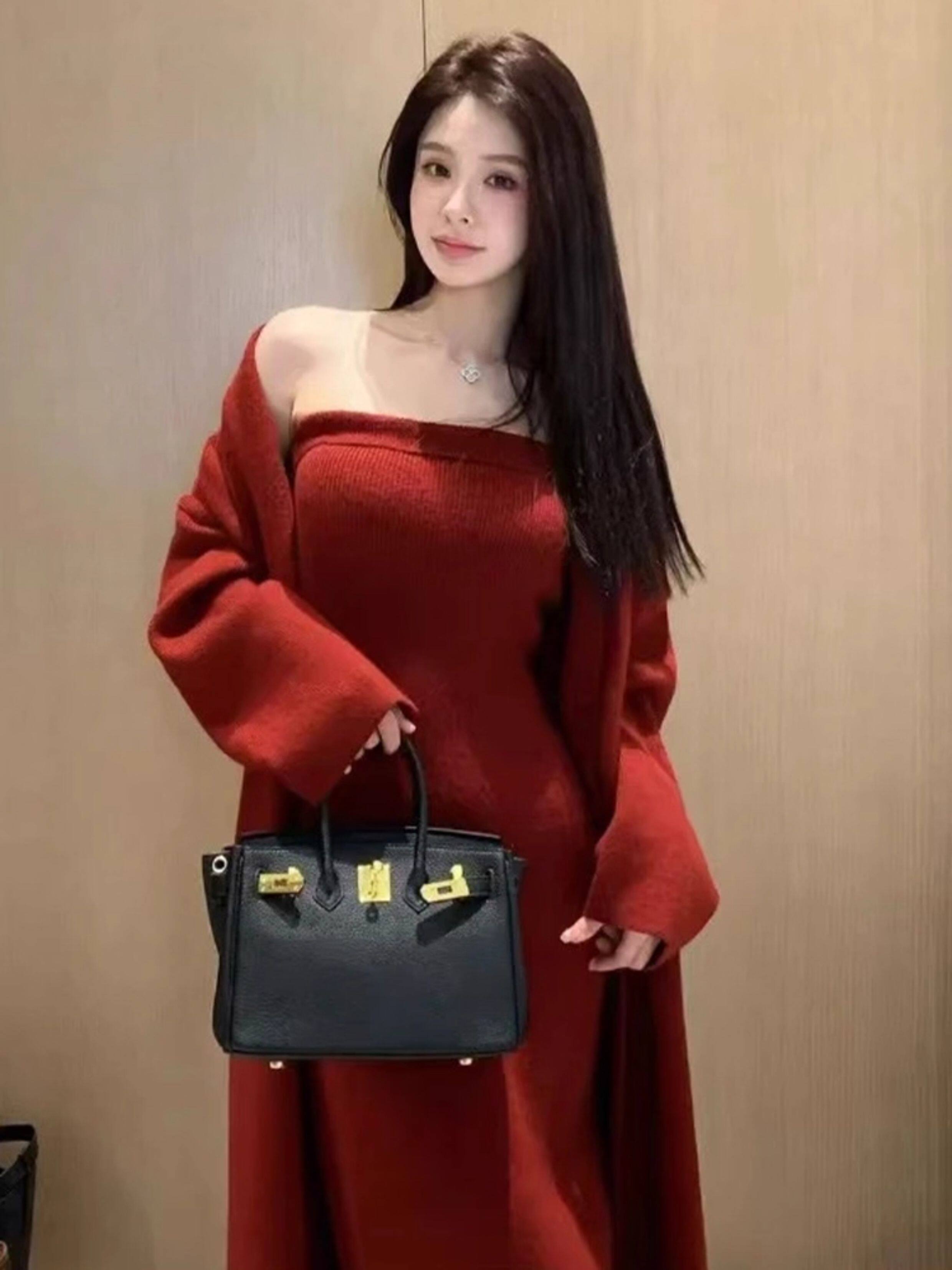 Knitted Dress for Women, Autumn and Winter 2026 New Style, New Year Outfit, High-End Long Dress Set, New Year's Outfit