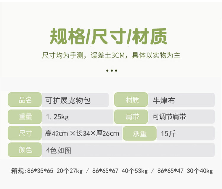 Applicable Size 34*26*42cm Recommended 7.5kg Cats/ 5kg Dogs