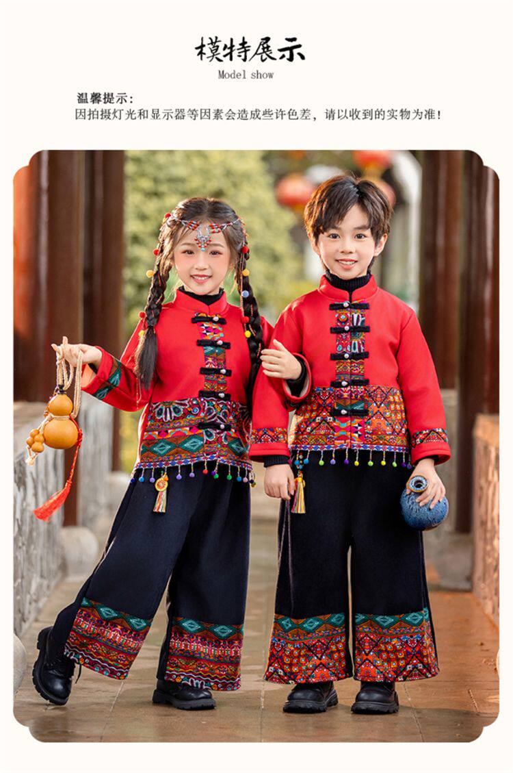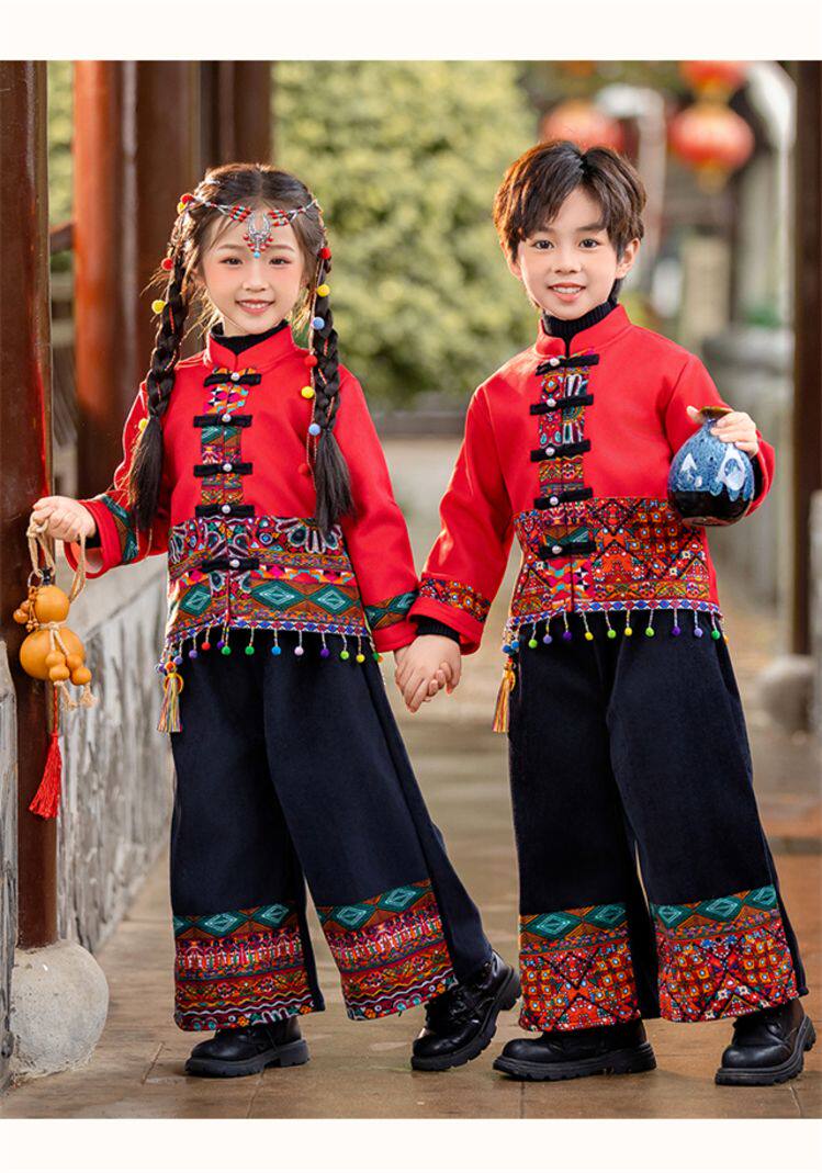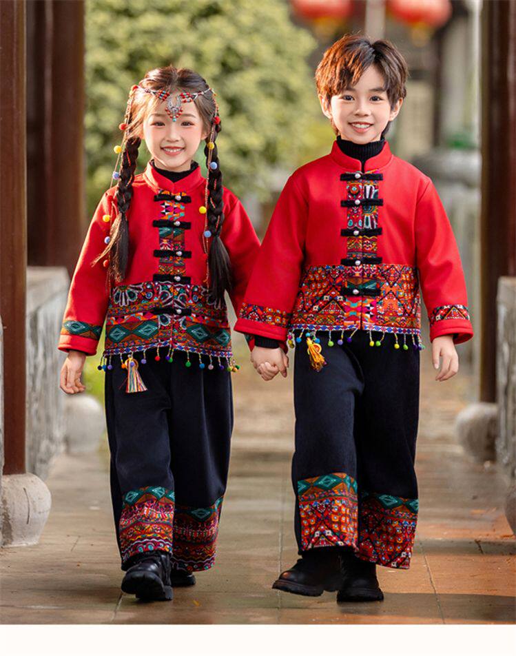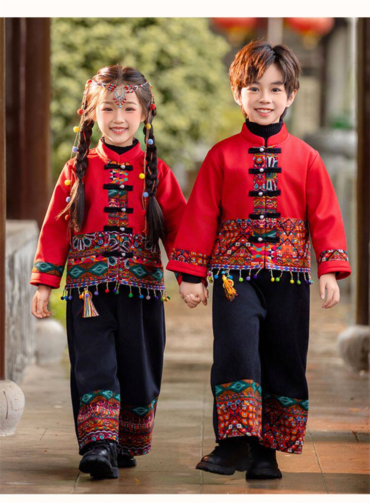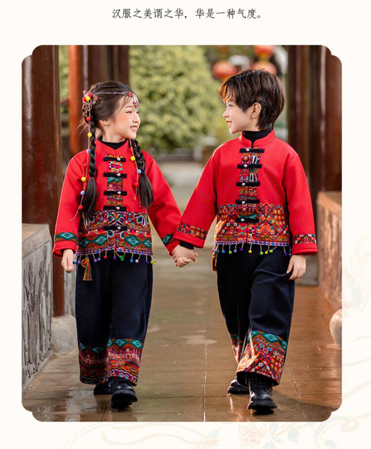 Dai Ethnic Clothing Autumn and Winter Style with Thick Fleece, Ethnic Minority Style Suit for Children, Boys and Girls, Kindergarten New Year's Performance Costume