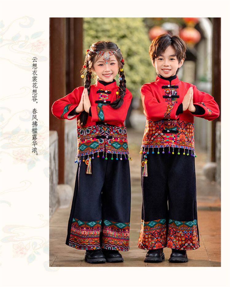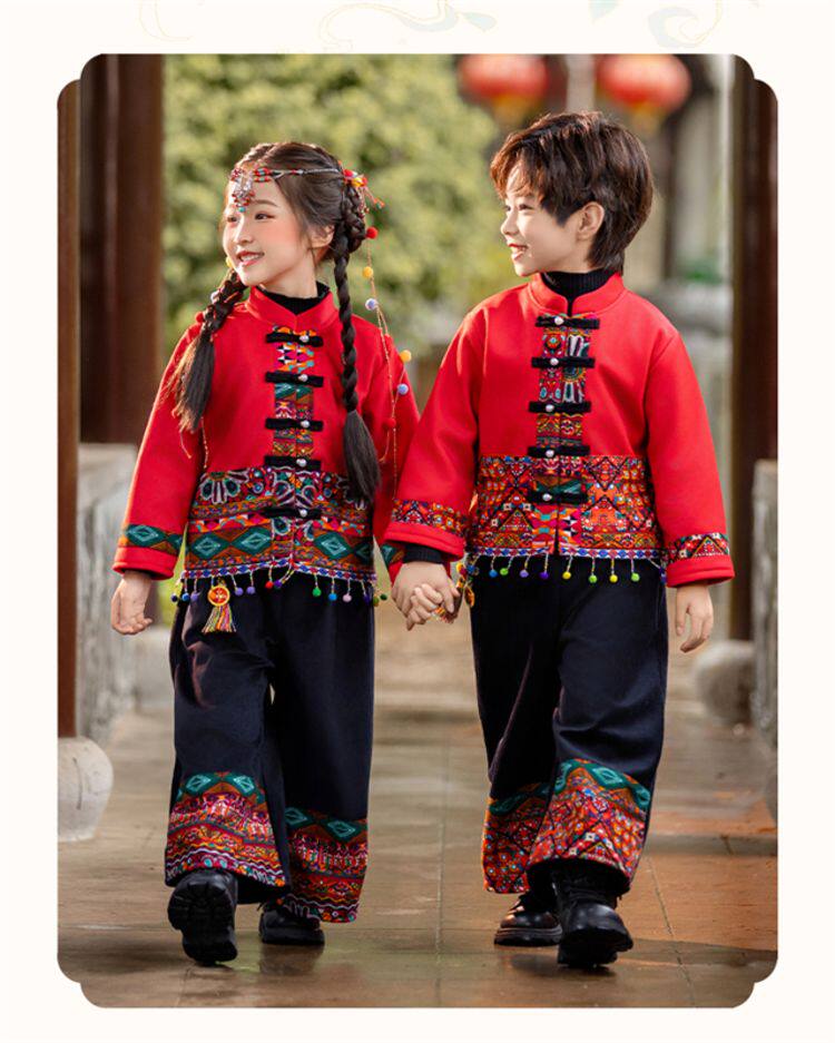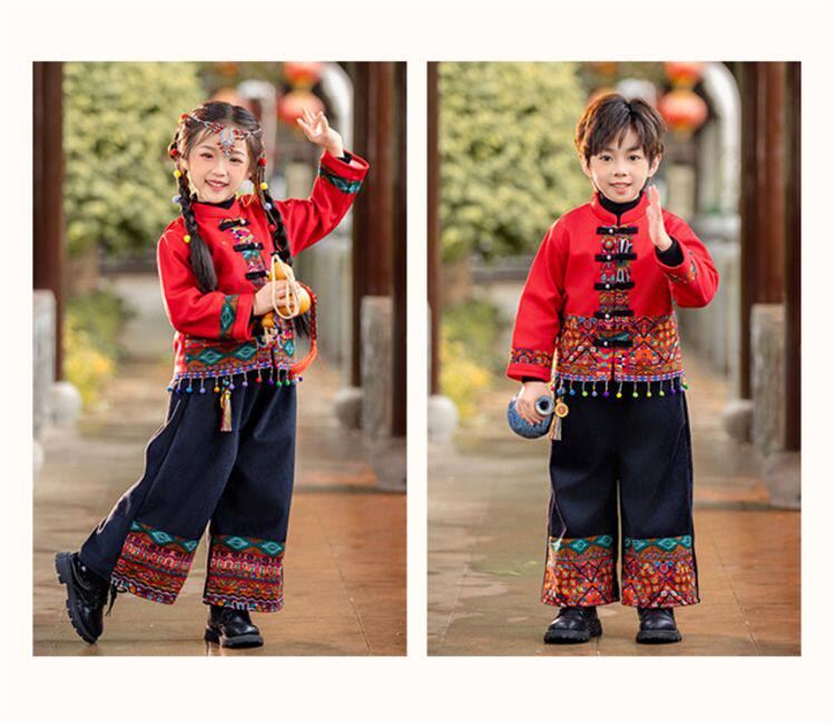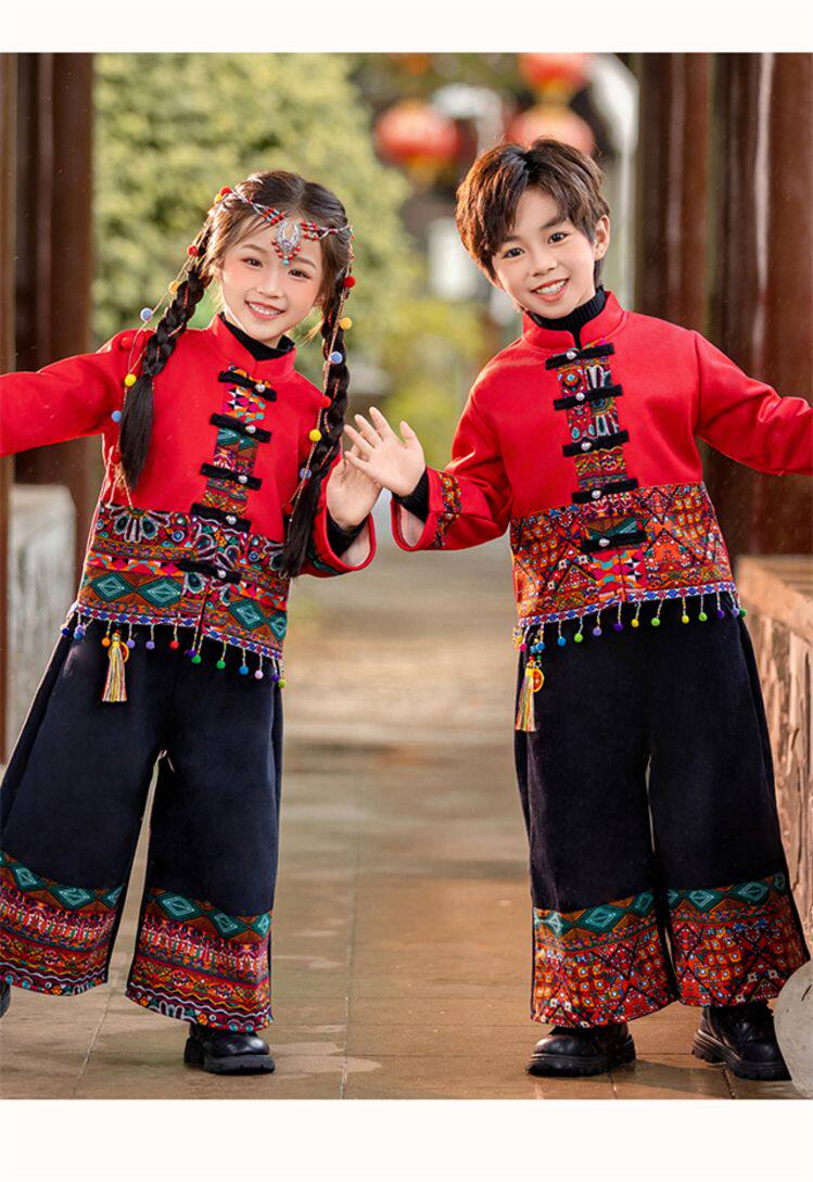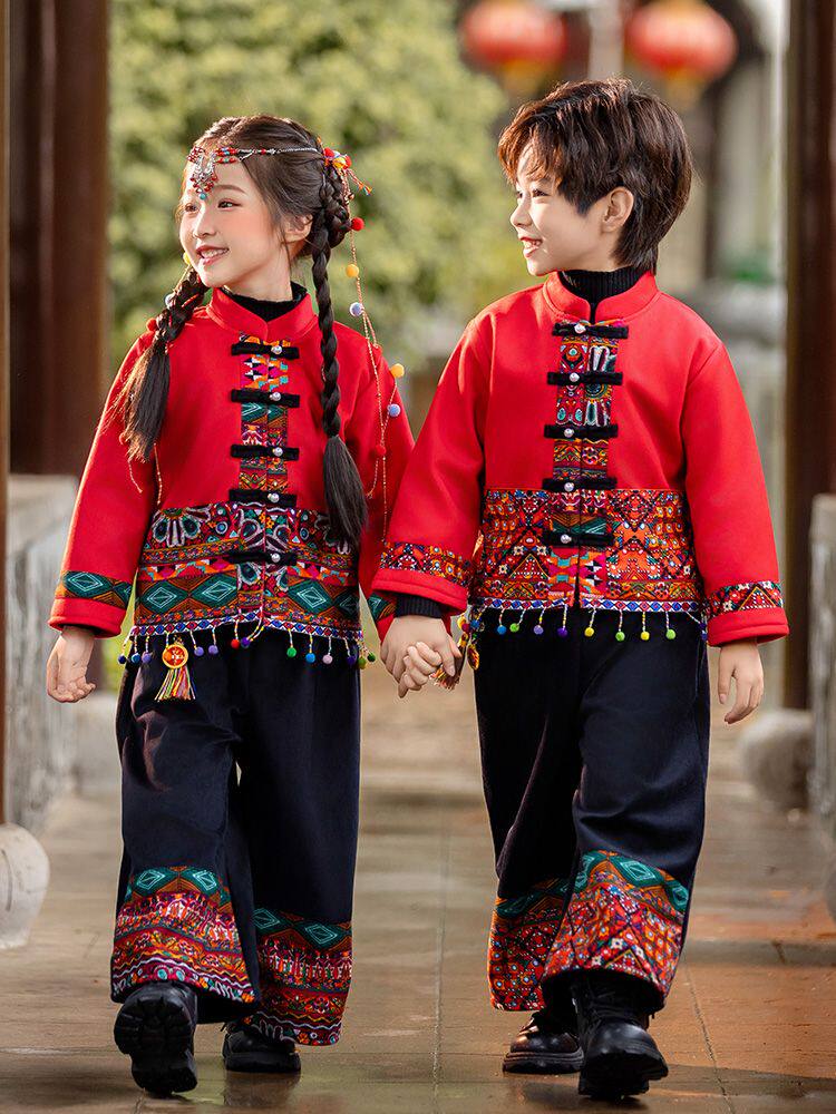 Dai Ethnic Clothing Autumn and Winter Style with Thick Fleece, Ethnic Minority Style Suit for Children, Boys and Girls, Kindergarten New Year's Performance Costume