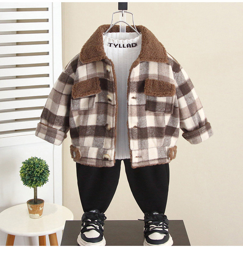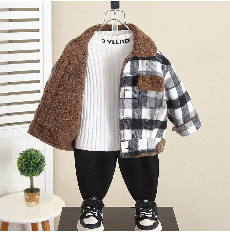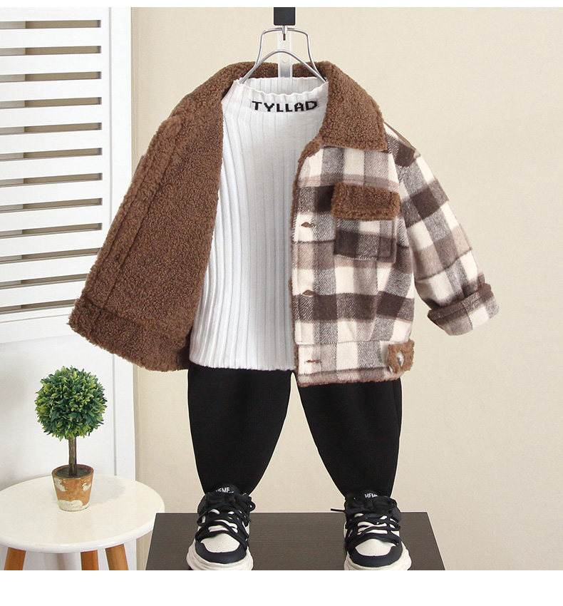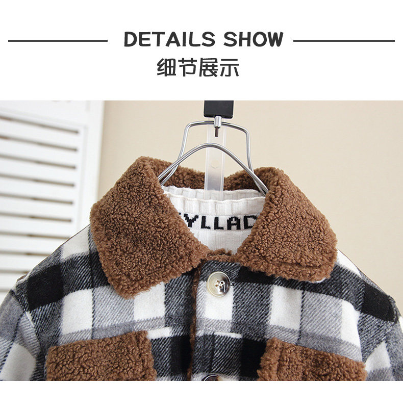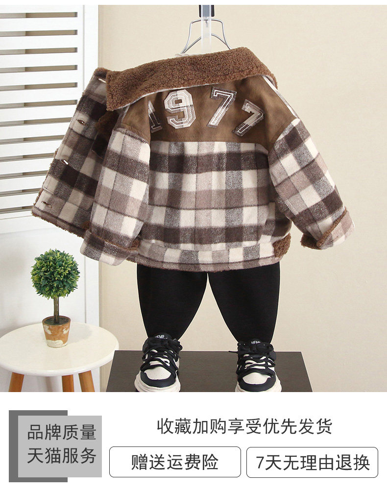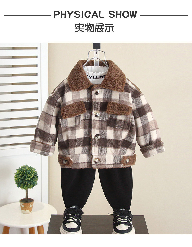 Boys' velvet thickened woolen coat 2025 winter new children's fur integrated autumn and winter baby cotton clothes