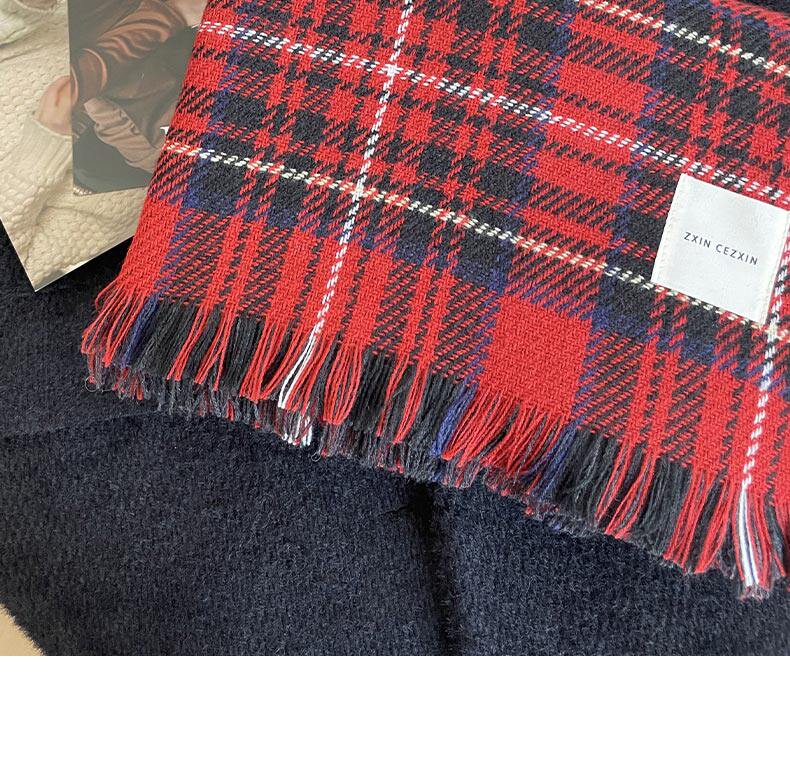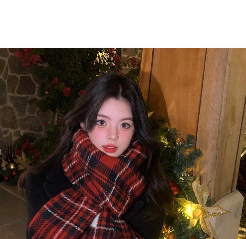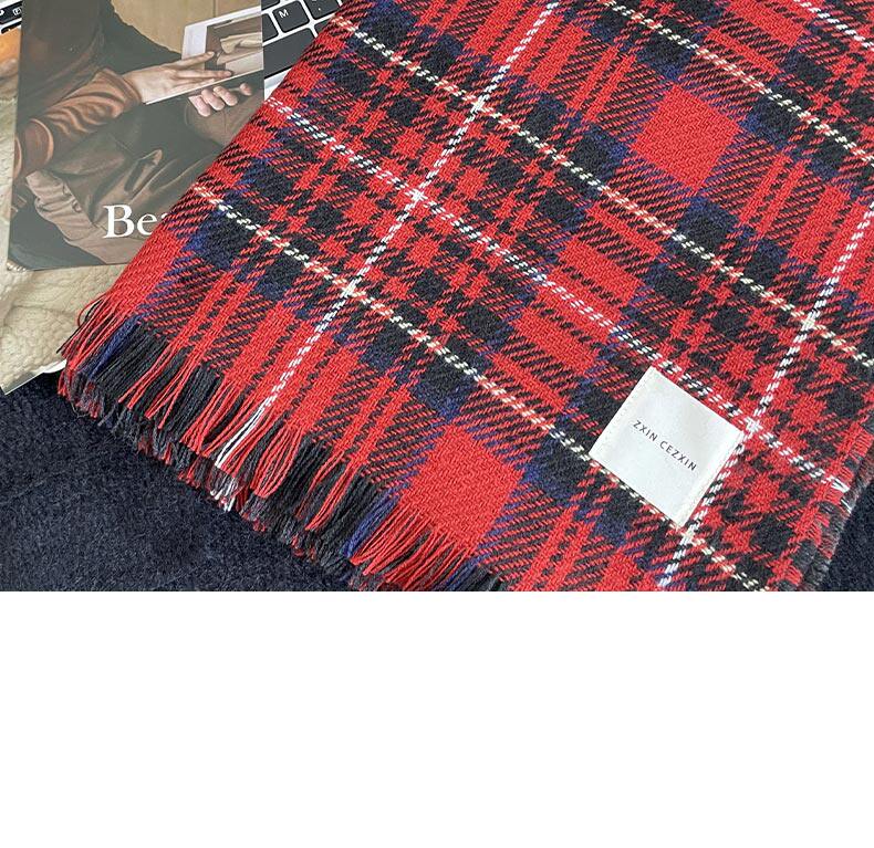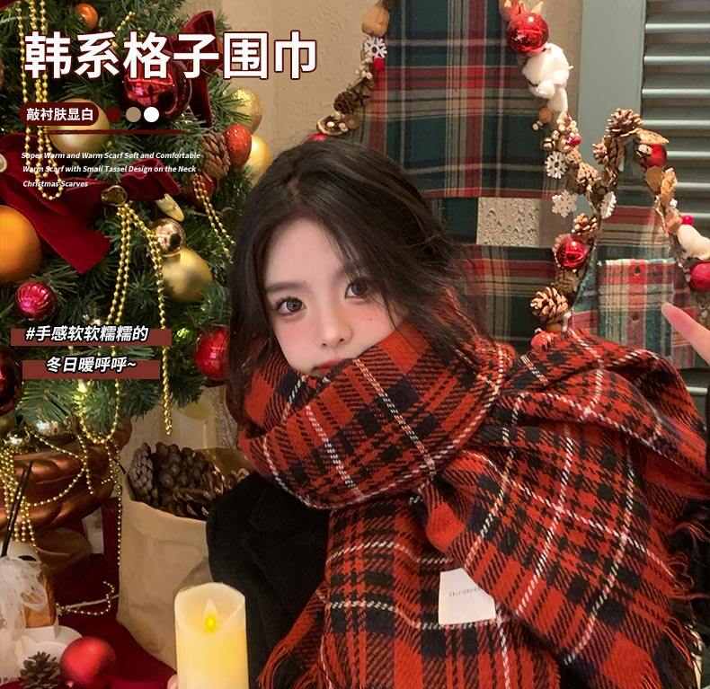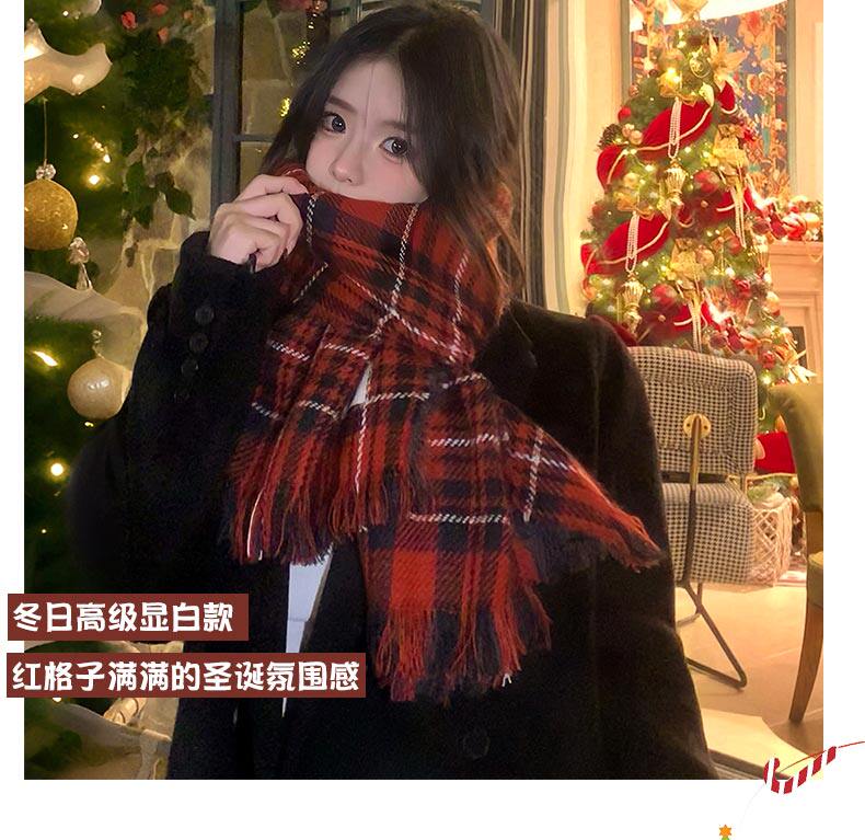 British Vockoo Classic Christmas Scarf for Women, Winter Korean Style Versatile High-End Scarf, Couple's Christmas and New Year Gift