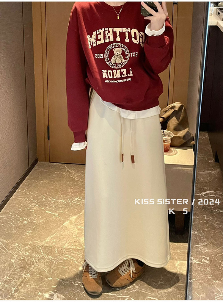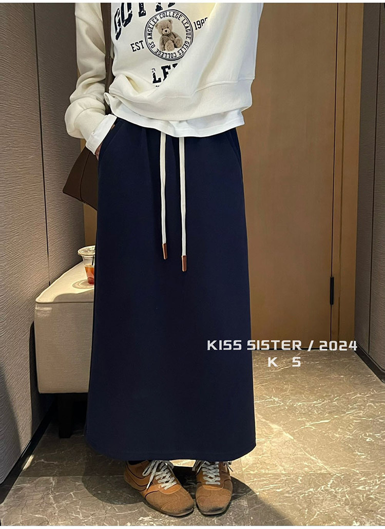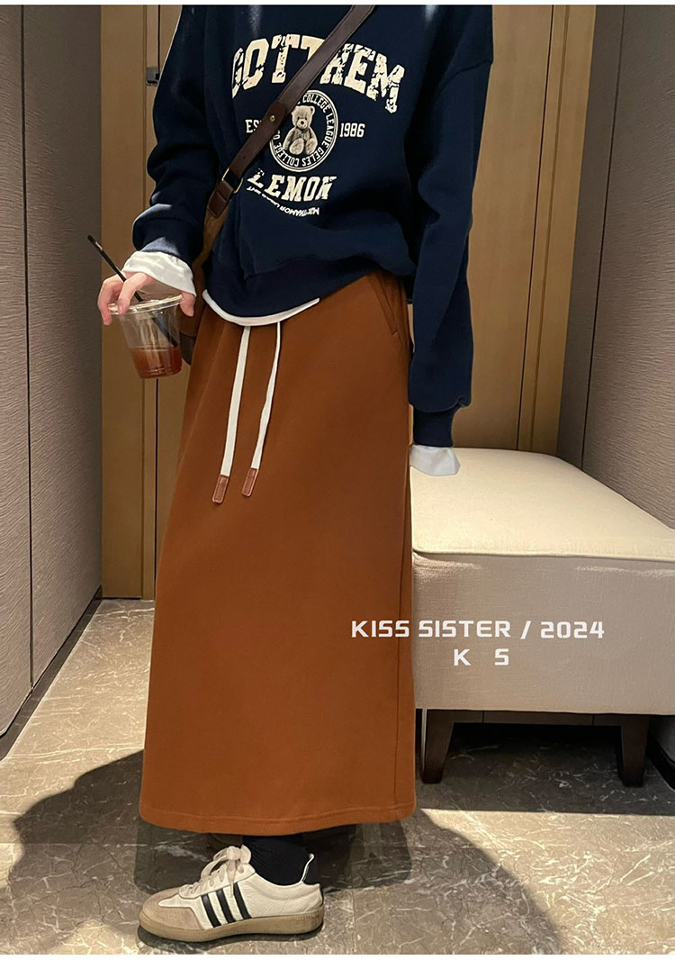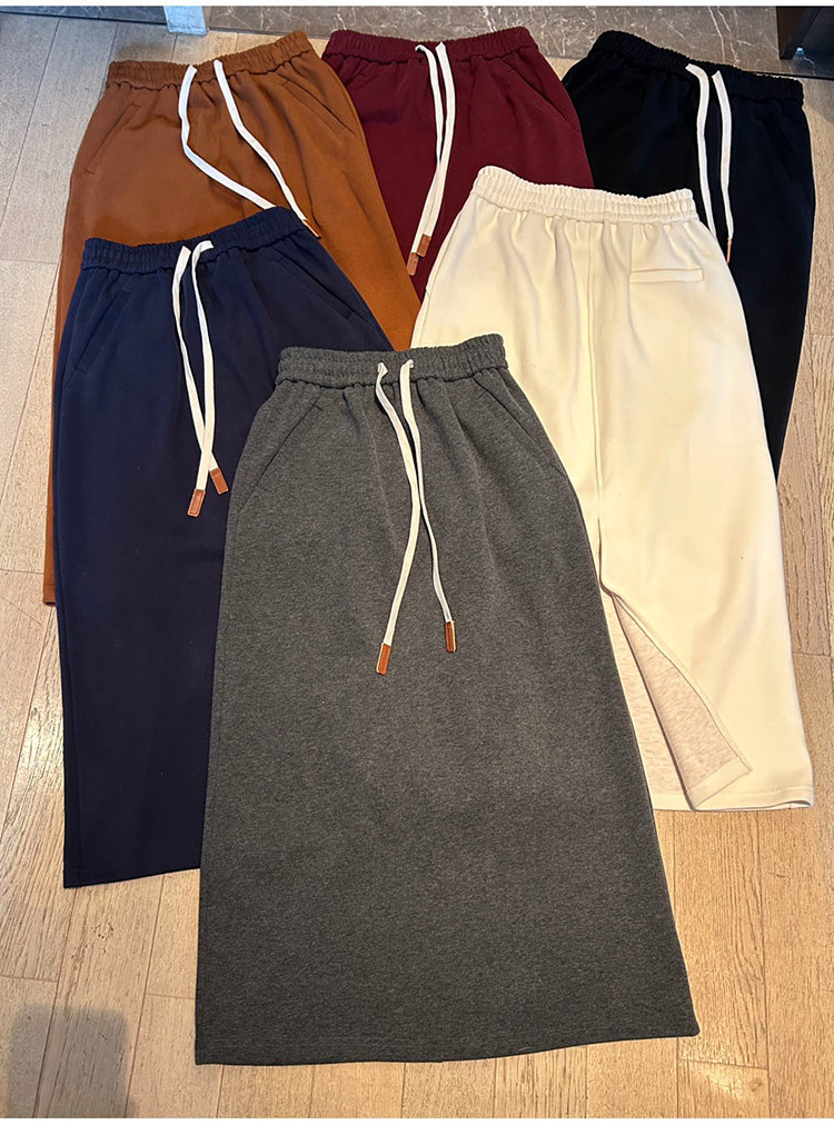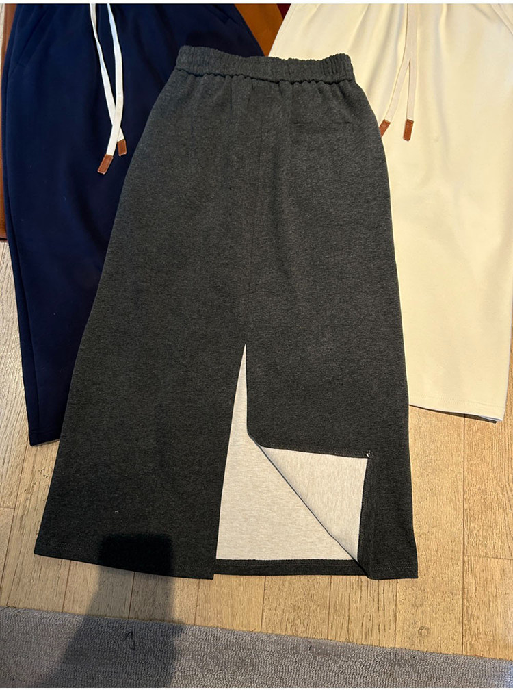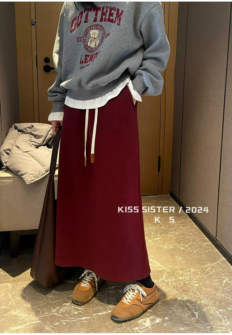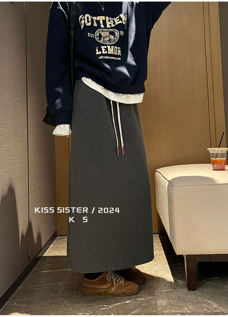 Autumn and Winter Gray Wool Knitted Skirt for Women, Stylish High-Waisted Slimming Straight Skirt, Petite Drawstring A-Line Long Skirt