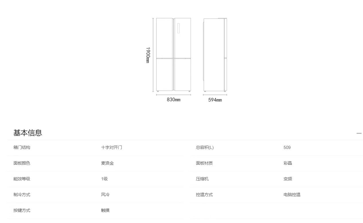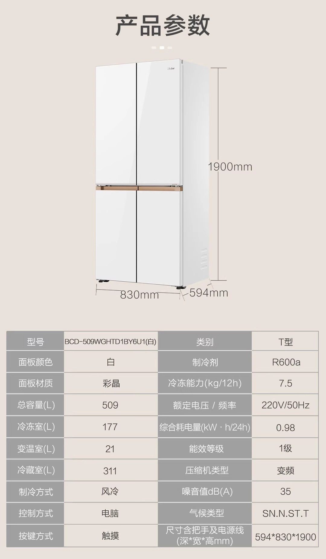 Haier Bcd-509Wghtd1By6U1 White Cross-Door Refrigerator Ultra-Thin Zero-Inset Home Use Mairang Air-Cooled