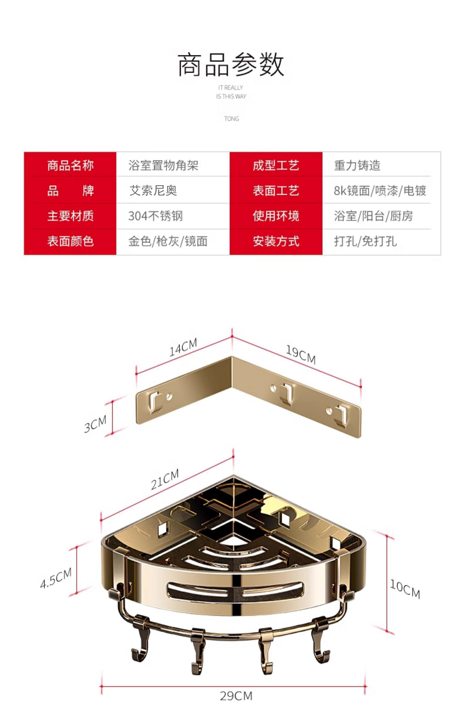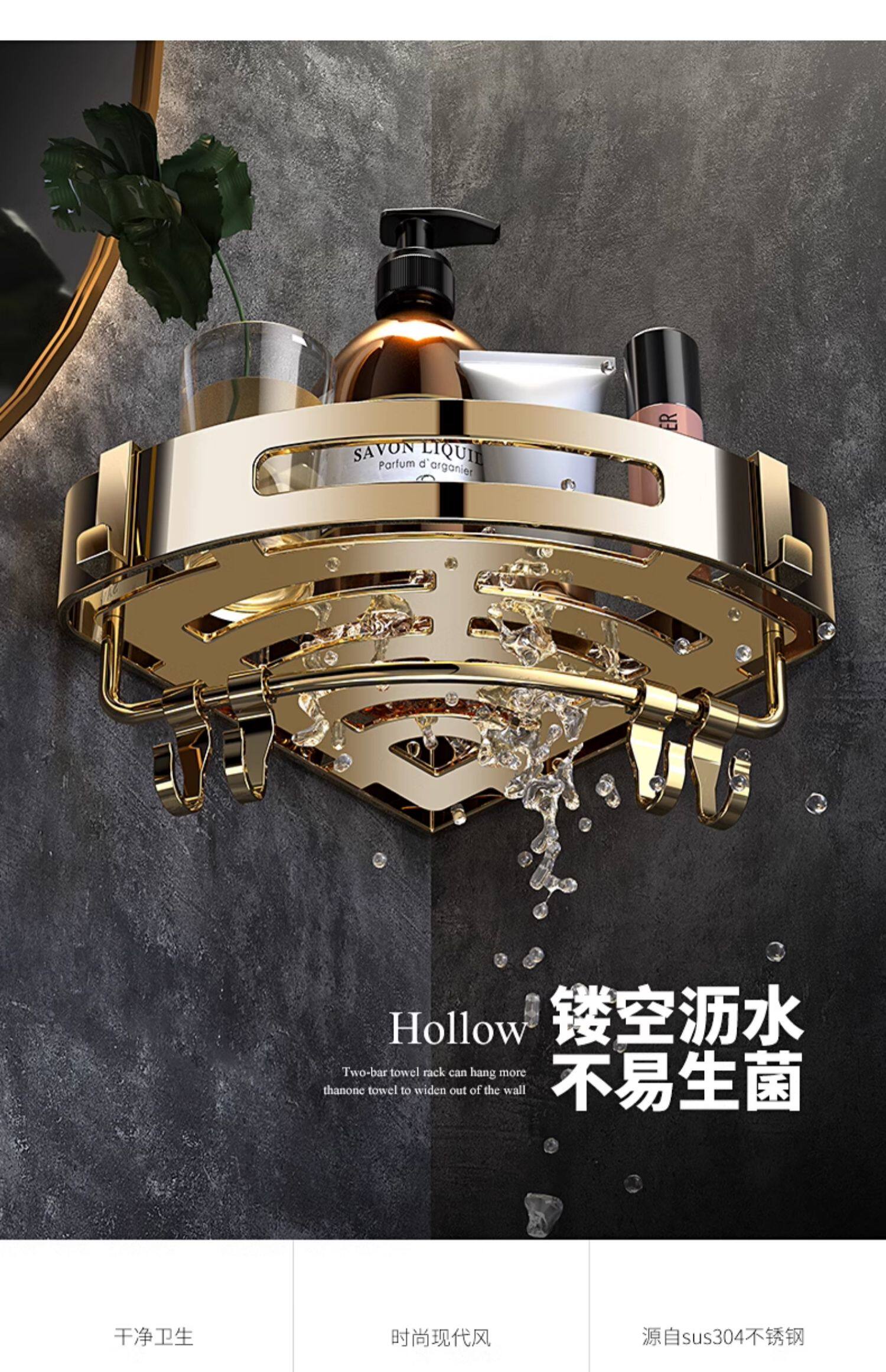 Italian Aisino Golden Bathroom Triangular Storage Rack Detachable Bathroom Storage Rack 304 Stainless Steel