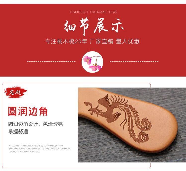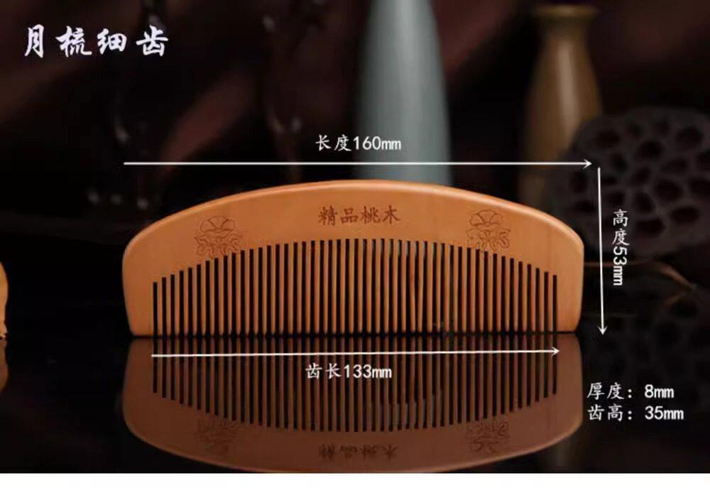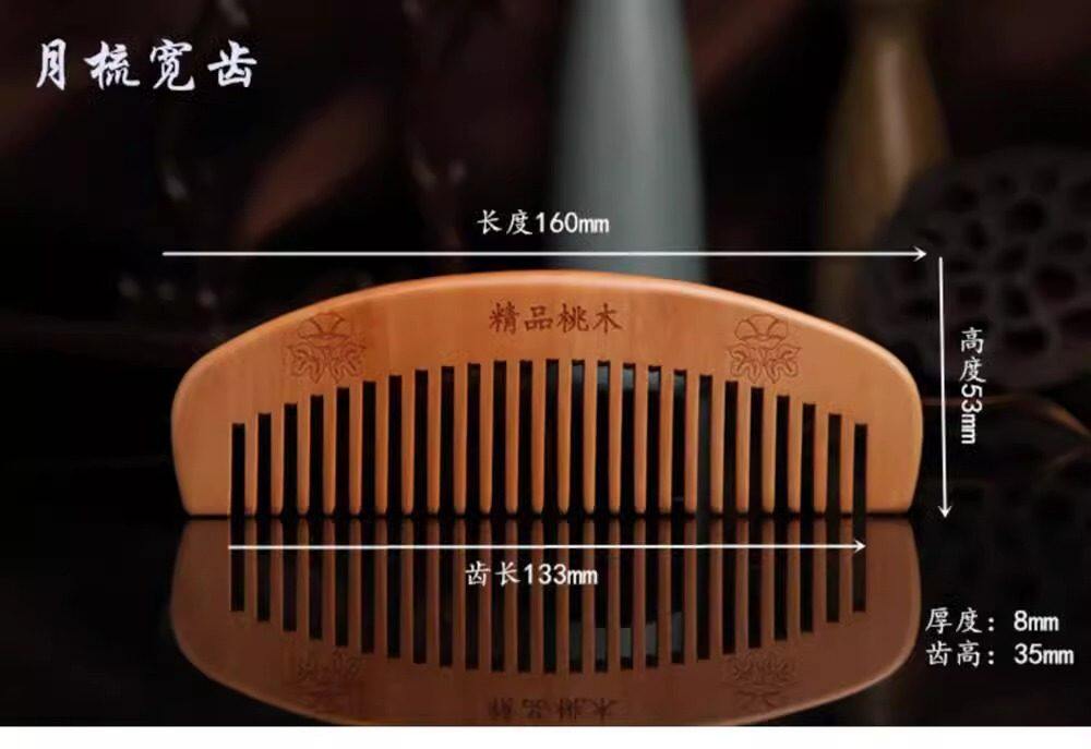 Large Peach Wood Comb Gift Peach Wood Comb Hairdressing Comb Anti-Static Portable Makeup Small Comb with Handle Moon Comb