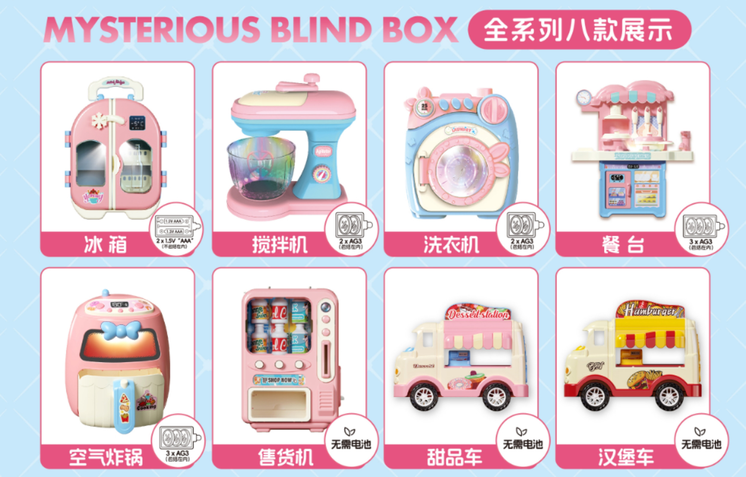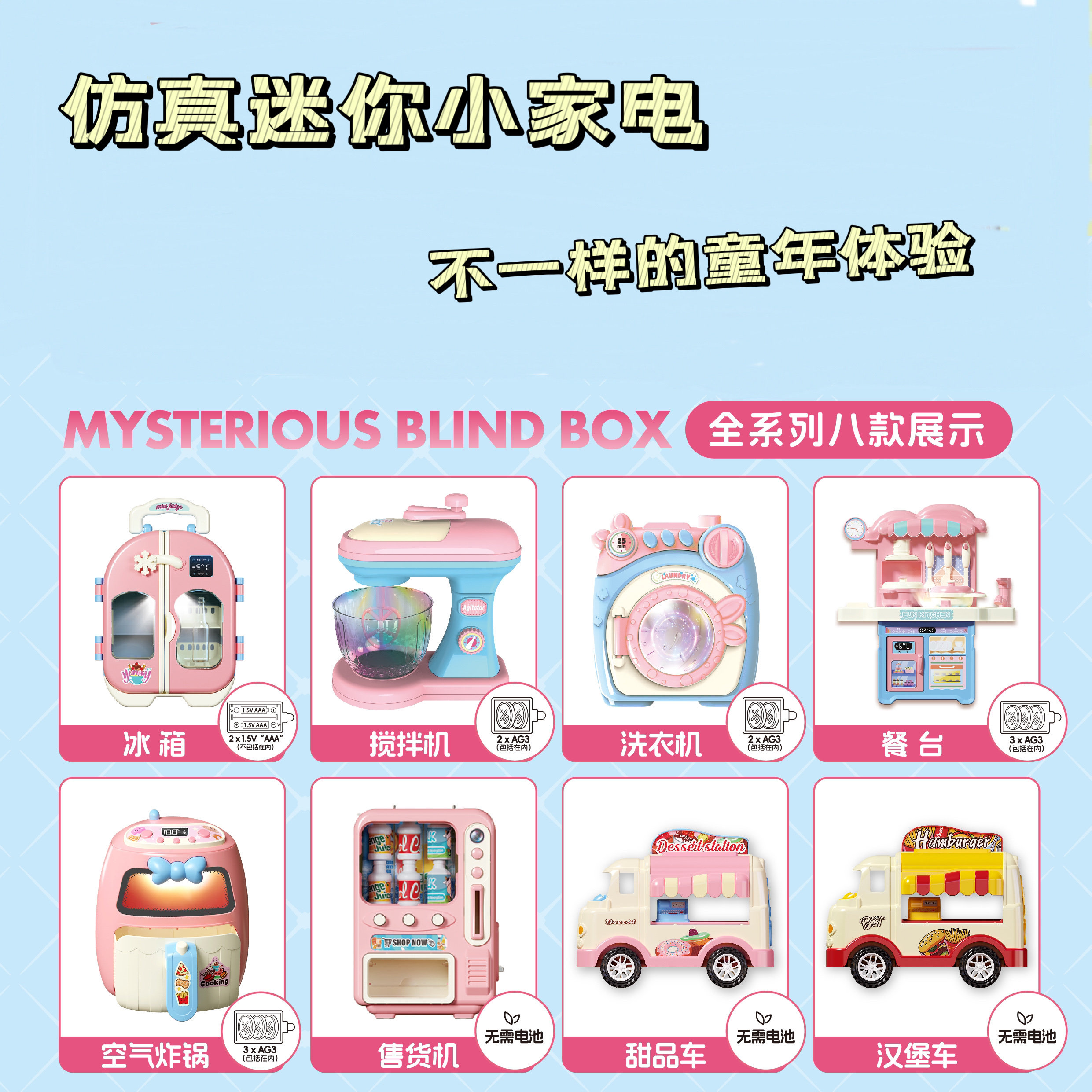 Pretend Play Lighting and Home Appliance Simulation Toys, Dining Table, Washing Machine, Refrigerator, Dessert Cart, Children's Girls' Blind Box Wholesale