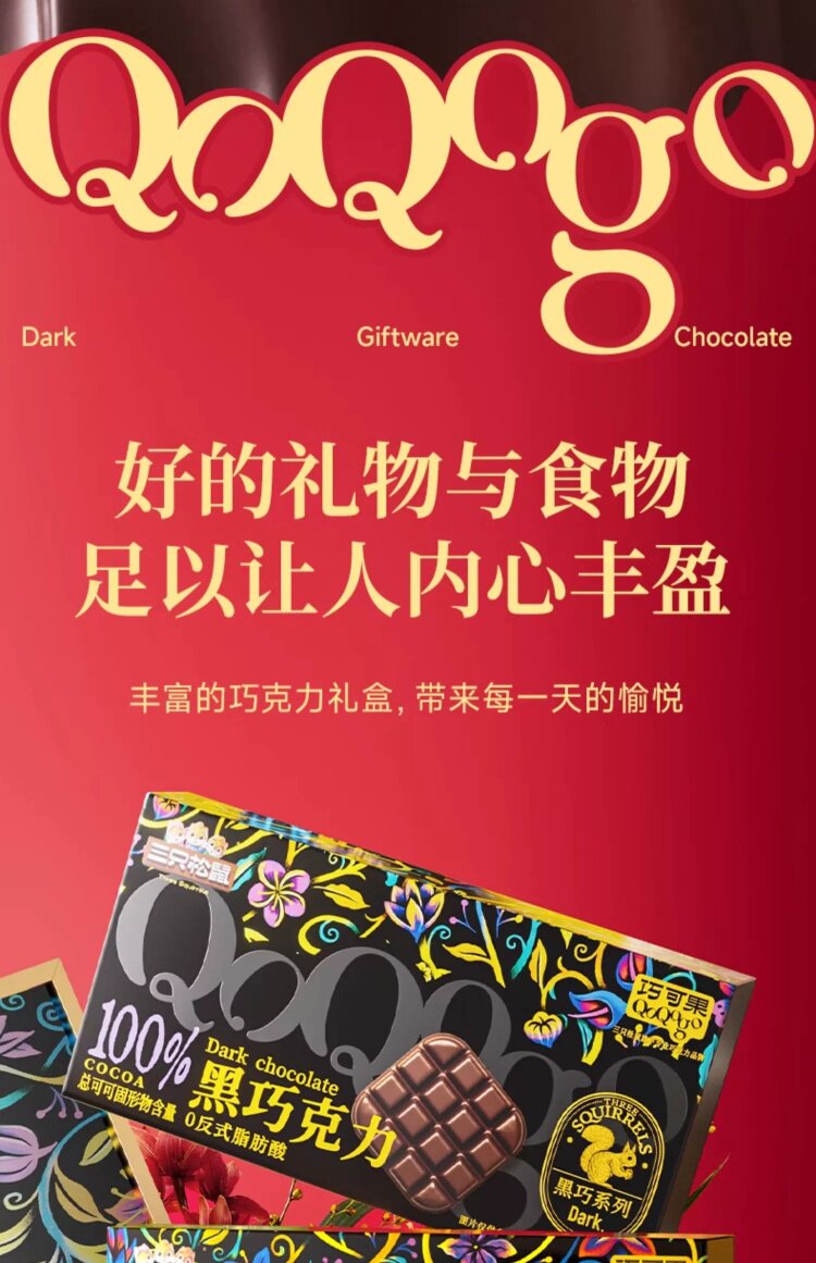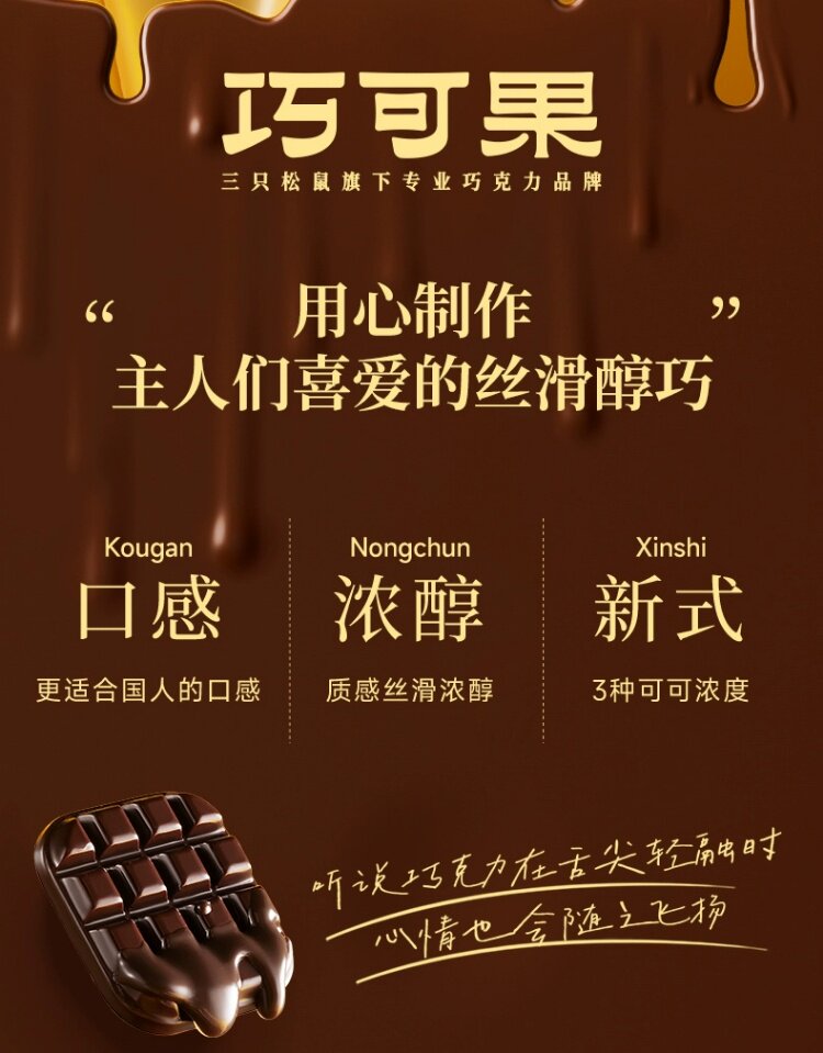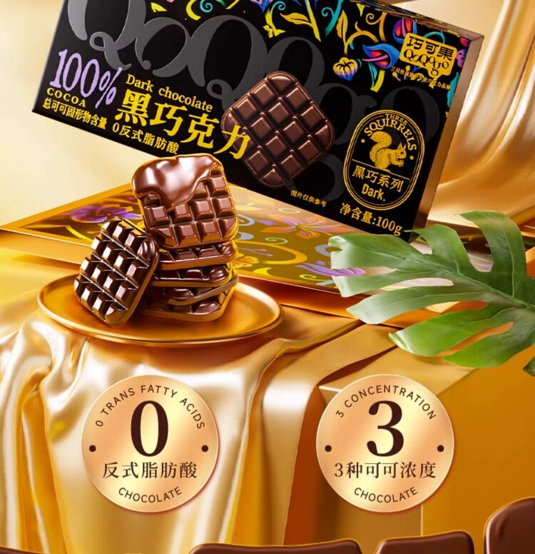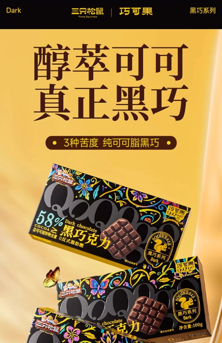 Pure Cocoa Butter [Three Squirrels_Black Chocolate 100g] Fitness Fat-Burning Daily Dark Chocolate Baking Snack