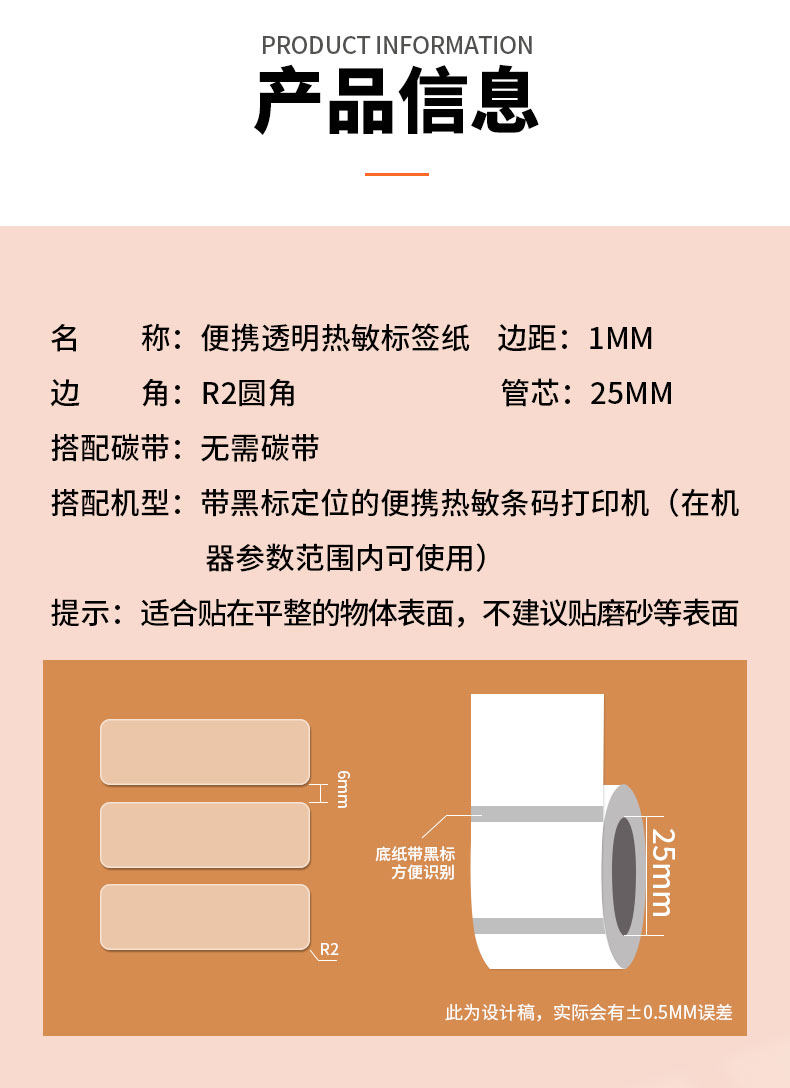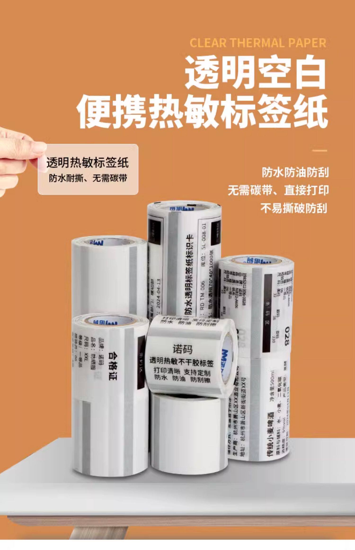 Noma Small Roll Core Portable Transparent Thermal Label Paper 60*40X30 20 50 70 75 Jiabo M322/B3S Three-Proof Self-Adhesive Barcode Printing Sticker Name Mark Note Waterproof
