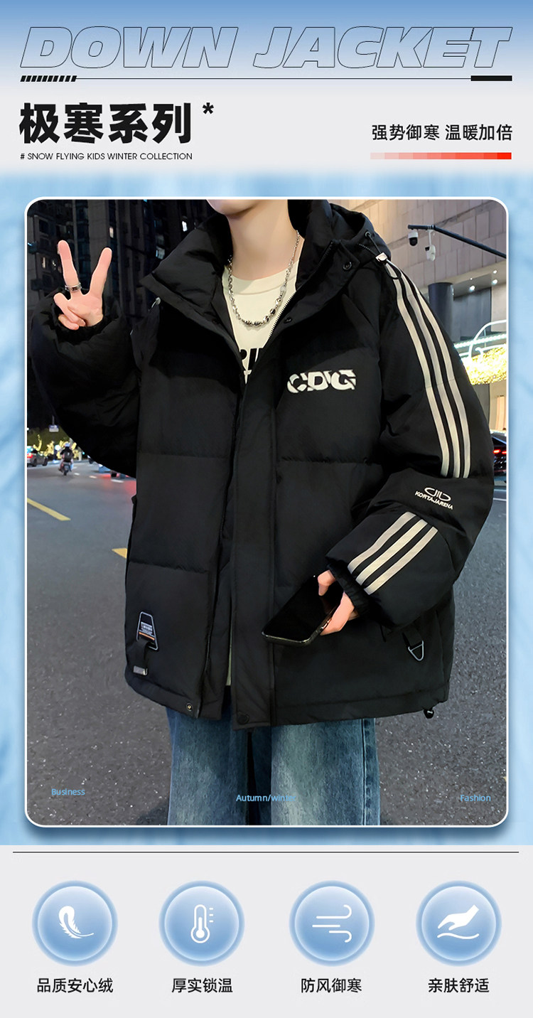 Winter Thickened 2025 New White Duck Down Jacket Boys Hooded Teenagers Junior High School Students Big Children Down Jacket