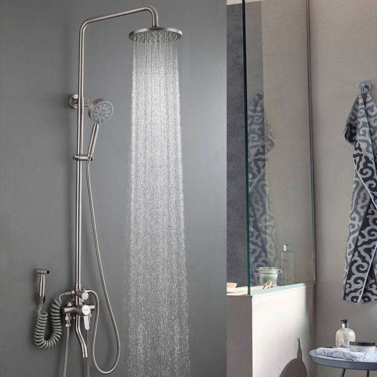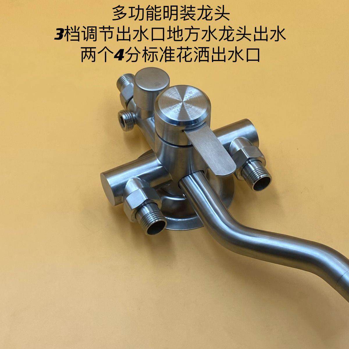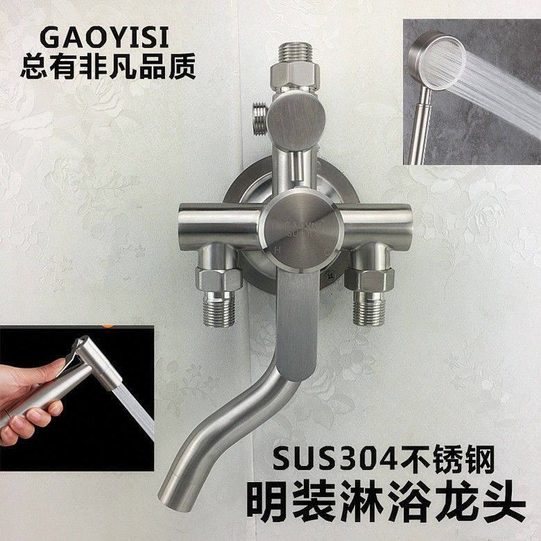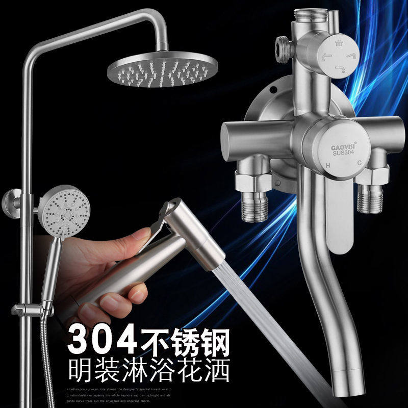 Stainless Steel Exposed Mixing Valve Hot and Cold Exposed Shower Set with Two-Speed and Three-Speed Settings and a Bottom Outlet Faucet