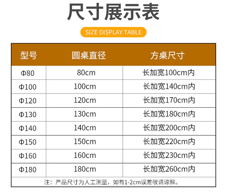 Size Suitable for Large Round Table with Diameter 160cm,Suitable for Round Table Diameter 140cm,Suitable for Round Table Diameter 120cm,Suitable for Turntable Diameter 80cm
