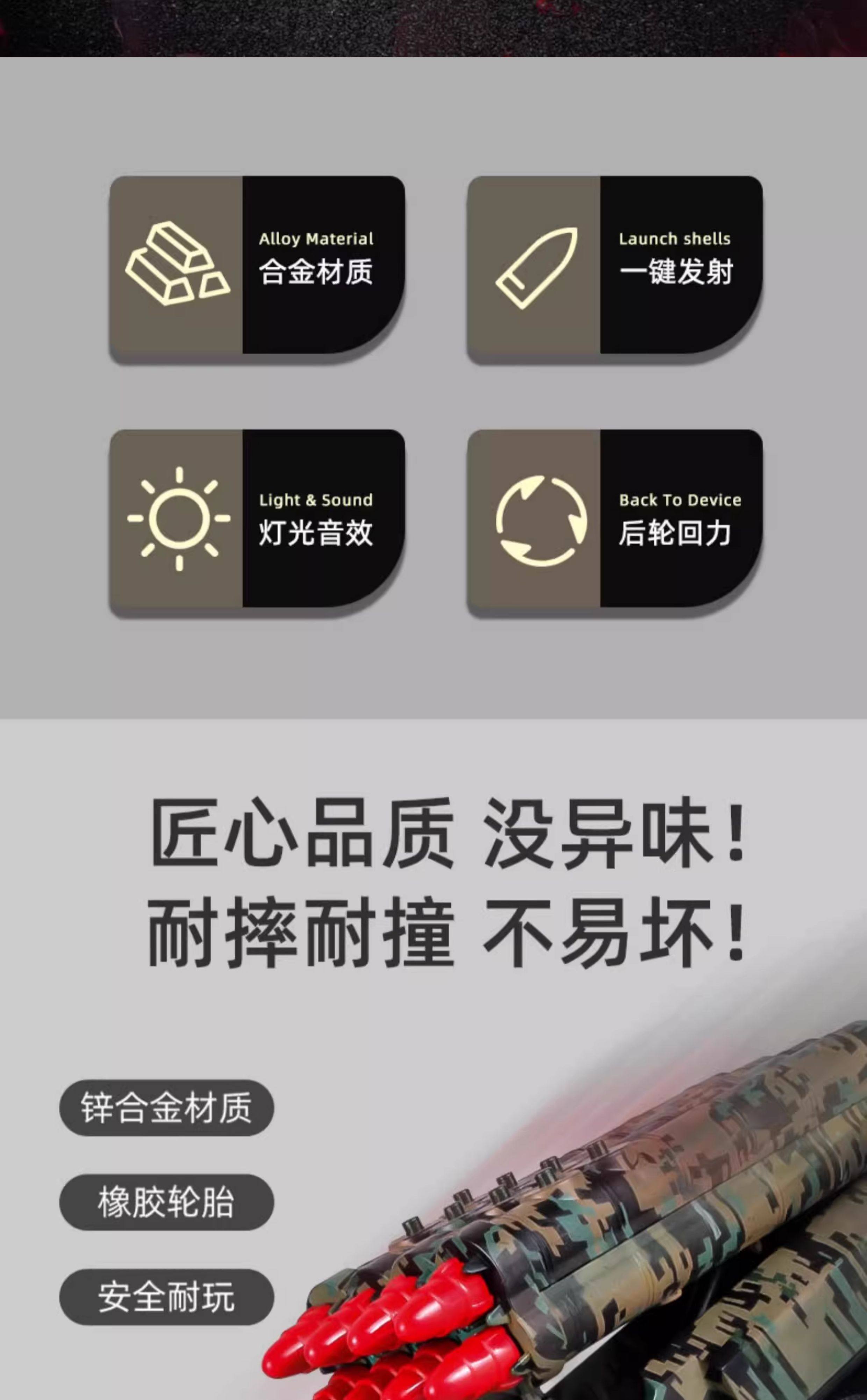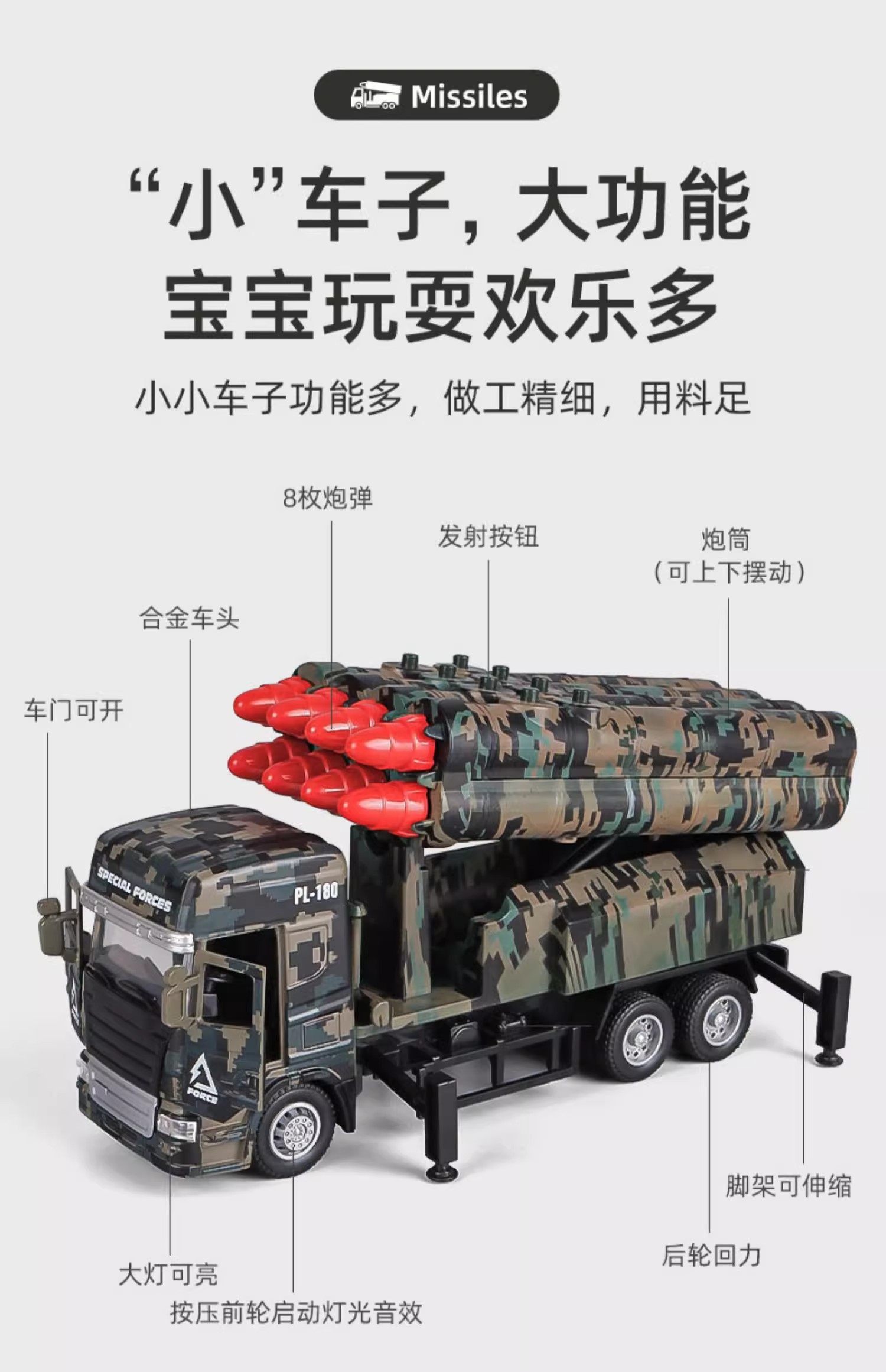 Color Classification Hot-Selling Main Image❤Large Eight-Missile Vehicle [8 Additional Missiles, 16 in Total],Full Blast❤Large Eight-Missile Vehicle [16 Additional Missiles, 24 in Total],[New Model - Six-Round Rocket Launcher] Alloy Armored Missile Vehicle [Turret Can Rotate],Extra Large✅Single-Launch Missile Vehicle [Plastic/Turret Rotatable/Sound and Light Early Education],Extra Large✅Single-Launch Missile Vehicle [Alloy/Turret Rotatable/Steering Wheel Horn/Sound and Light],Extra Large✅Eight-Missile Vehicle [Plastic/Turret Rotatable/Sound and Light Early Education],Extra Large✅Eight-Missile Vehicle [Alloy/Turret Rotatable/Steering Wheel Horn/Sound and Light],Large Missile Vehicle [Single Shot/Sound and Light Music],Large Missile Vehicle [Six Shots/Sound and Light Music],[Alloy Model] Large Missile Vehicle [Single Shot/Can Open the Door/Sound and Light Music],Alloy Six-Round Missile Vehicle