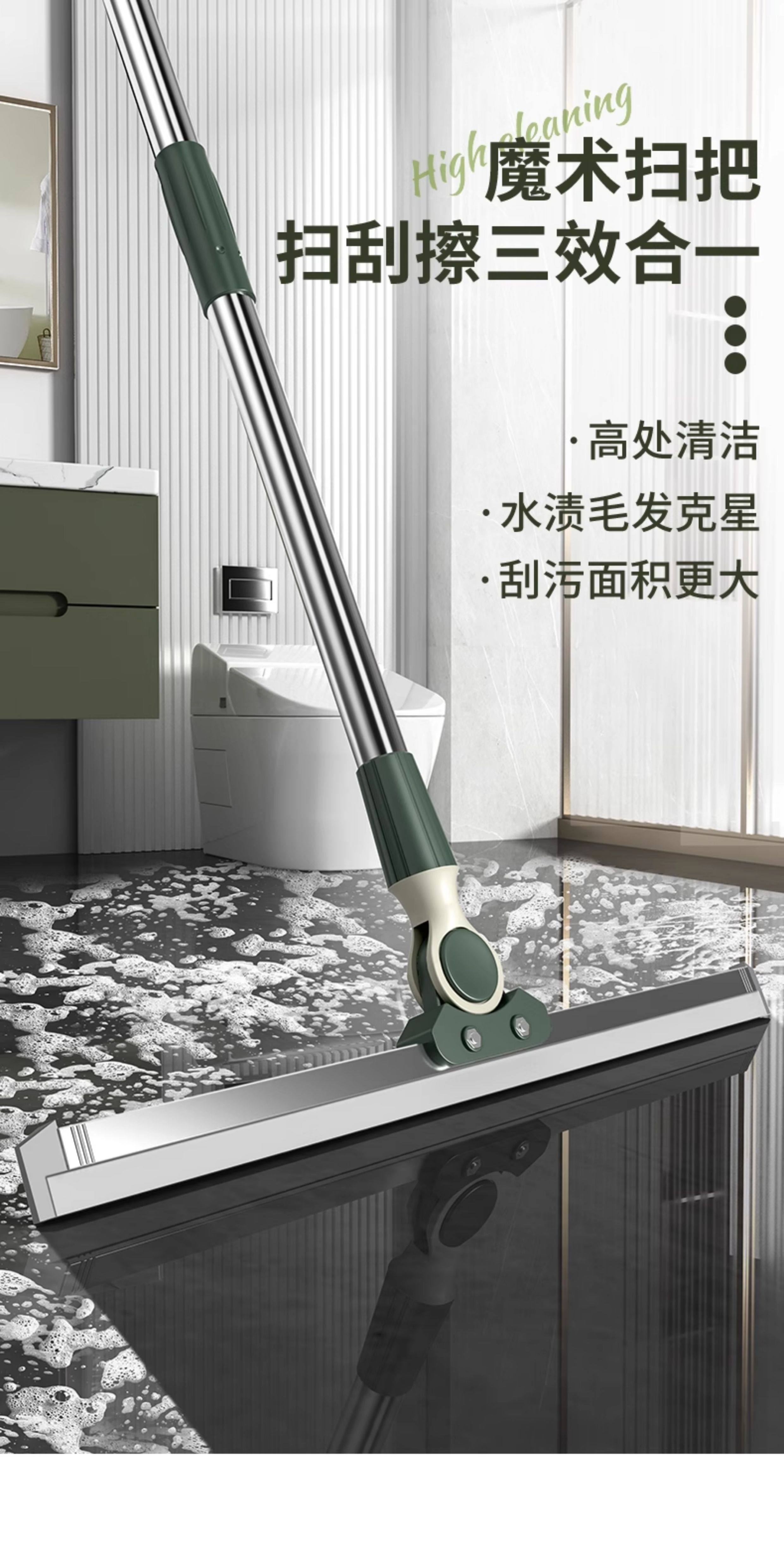 German Silicone Squeegee Water Scraper Sweeping Tool Magic Broom Dual-Purpose for Mopping and Sweeping in the Bathroom with Double Scraper Strips