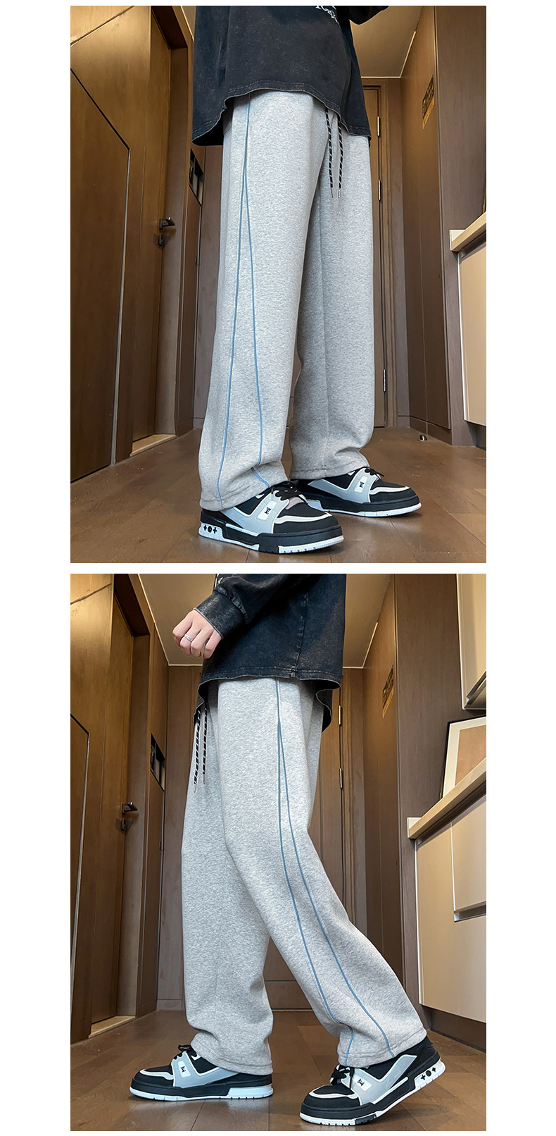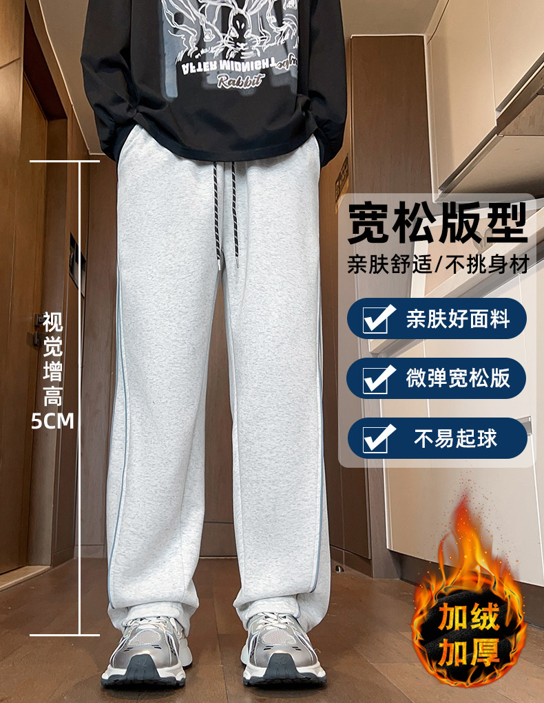 High-End Straight-Leg Pants for Men, Spring and Summer American Style, Wide-Leg Sweatpants for Teenagers and High School Students, Casual Pants for Boys