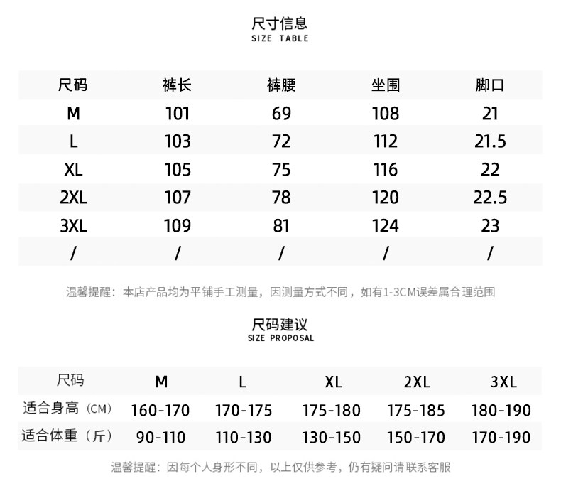 Outseam (cm) 99 cm 101.5 cm 104 cm 106.5 cm 109 cm