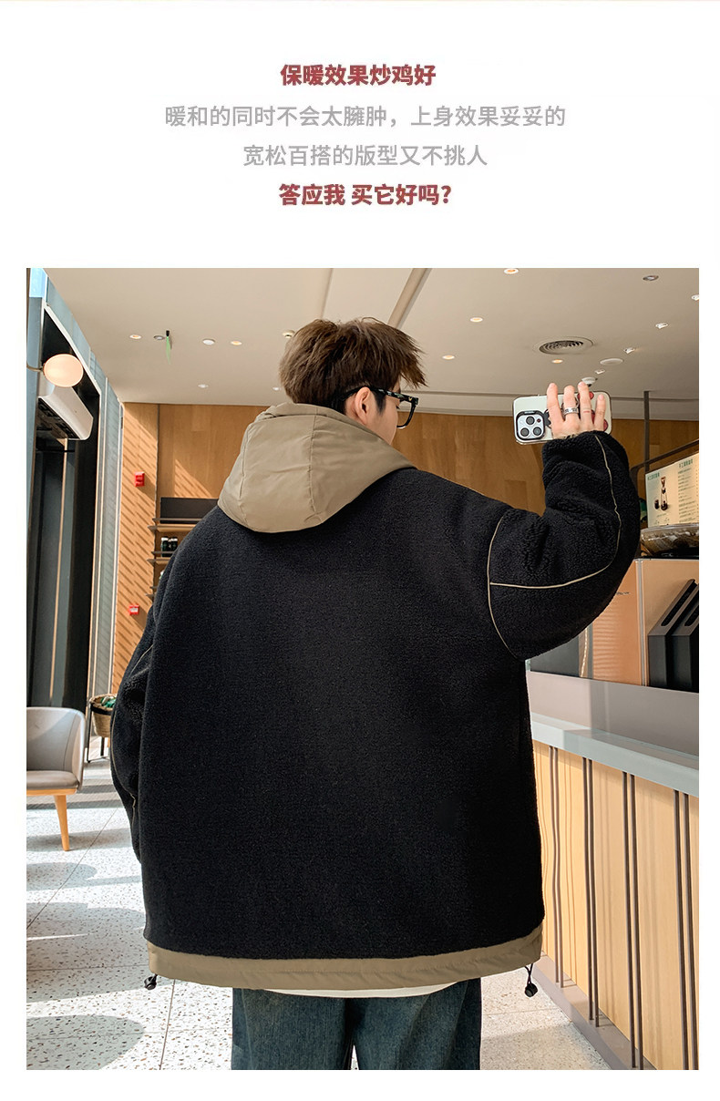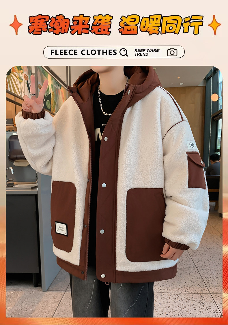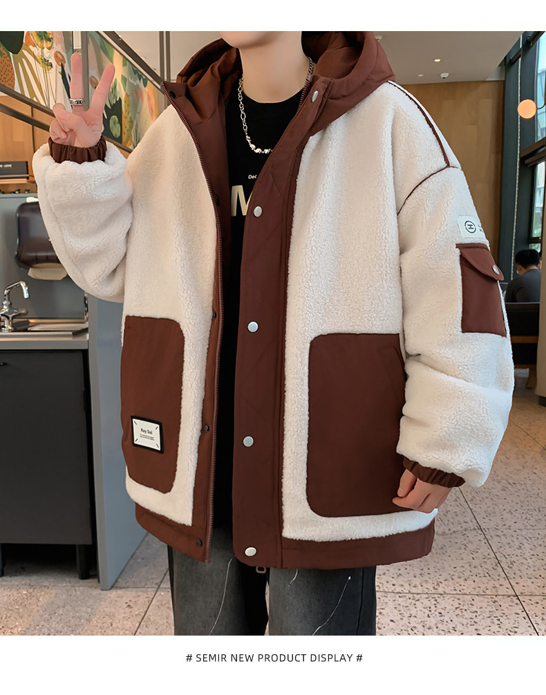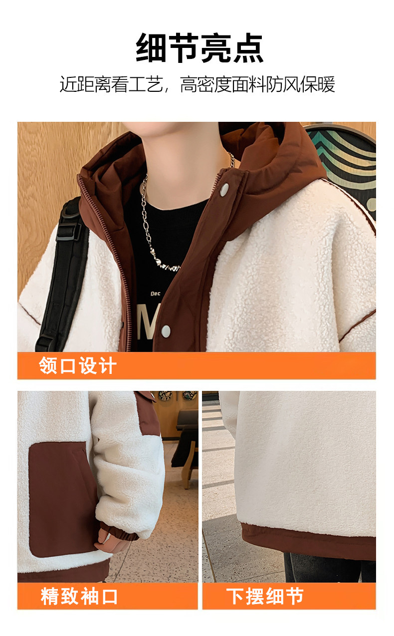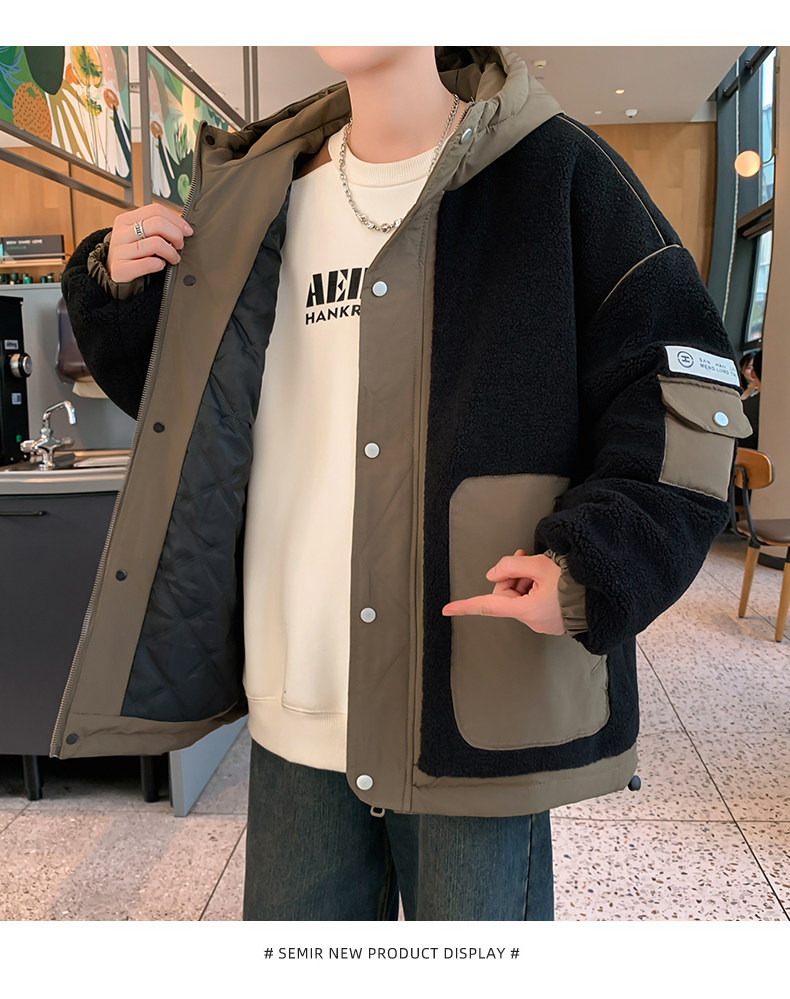 Lamb fleece jacket men's cotton thickened winter Hong Kong style youth student cotton coat boy's grain velvet cotton coat men's clothing