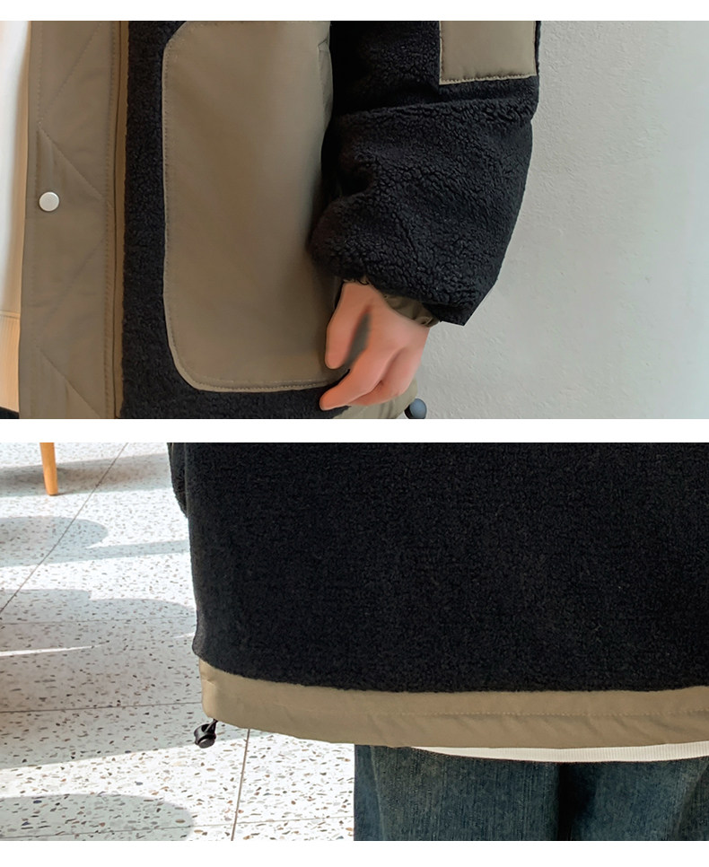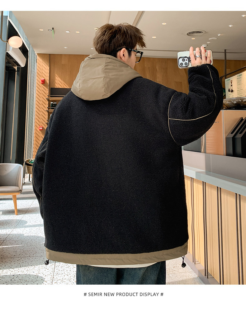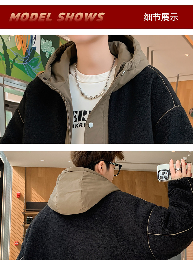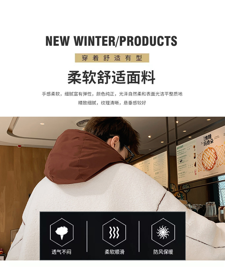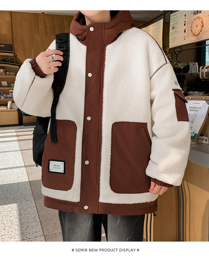 Lamb fleece jacket men's cotton thickened winter Hong Kong style youth student cotton coat boy's grain velvet cotton coat men's clothing