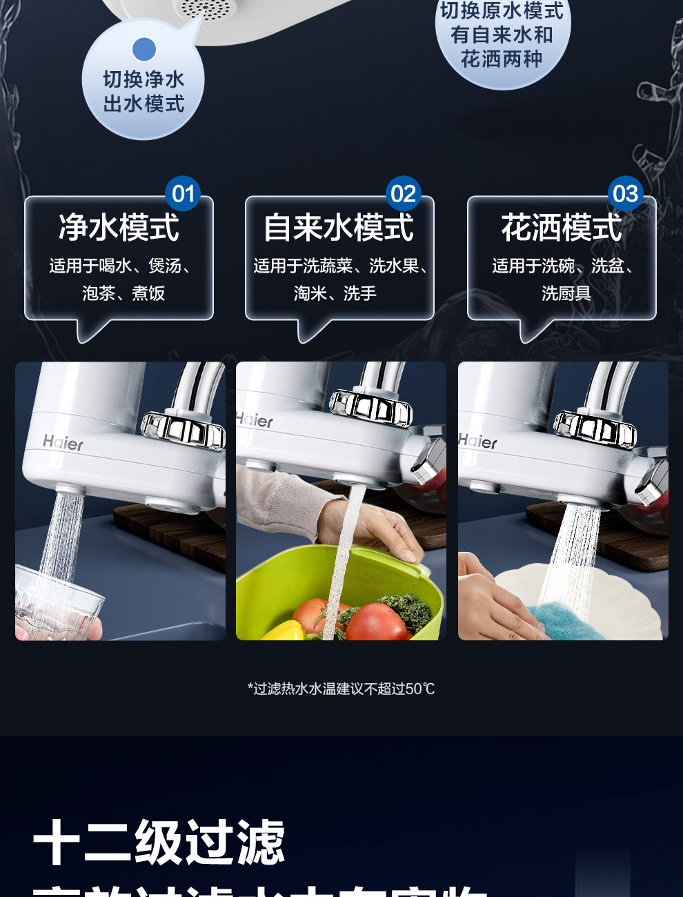 Haier Water Purifier Faucet Filter Household Kitchen Direct Drinking Pre-Filter Ceramic Filter Element Tap Water Purifier