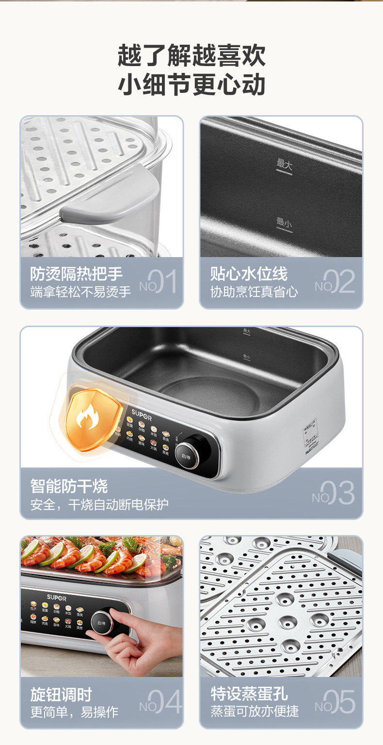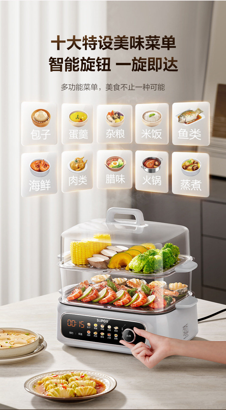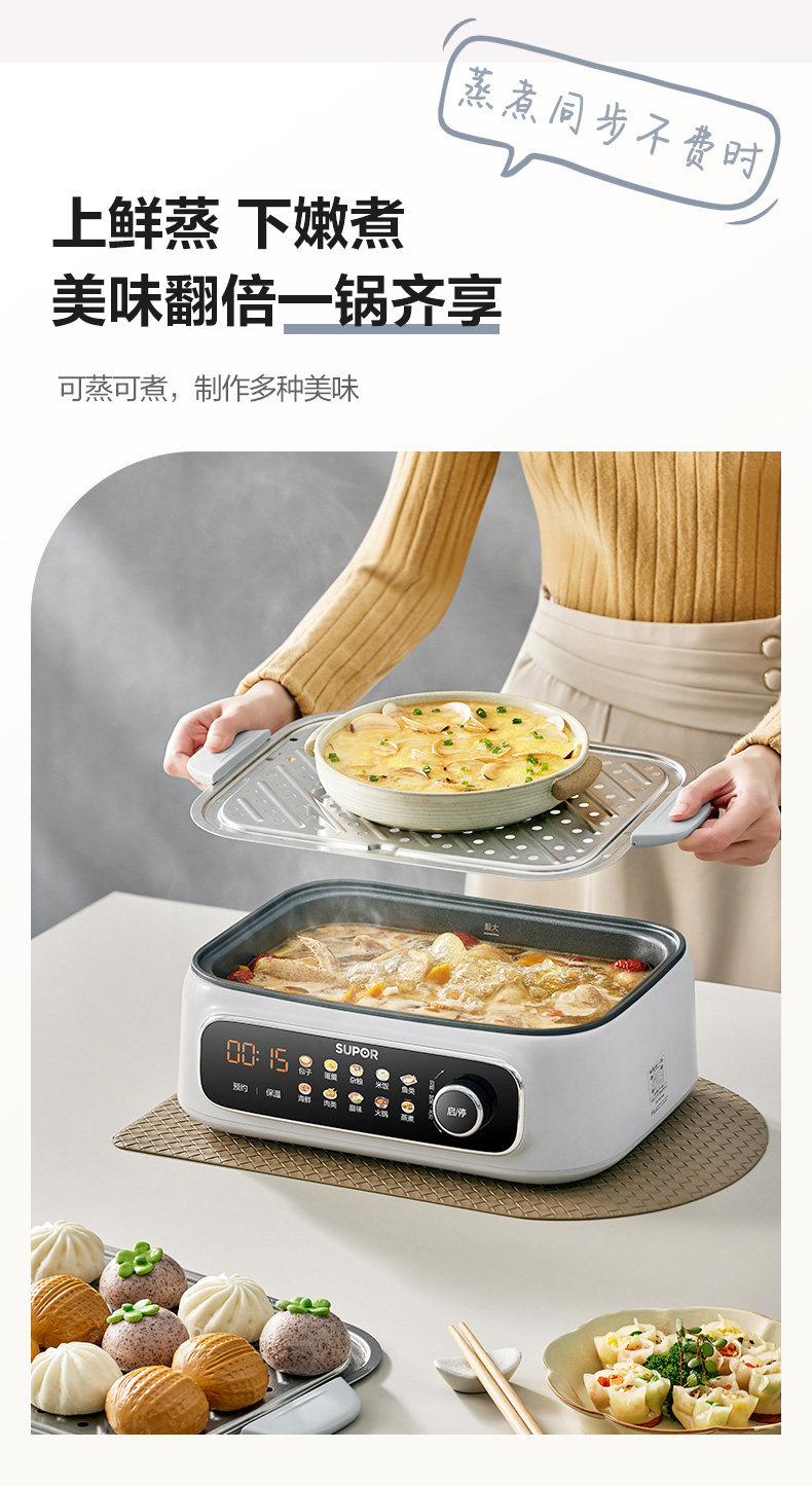 Supor Electric Steamer Multifunctional Household Three-Layer 2024 New Model Steaming Basket for Cooking and Stewing Multifunctional All-In-One Pot Genuine Product